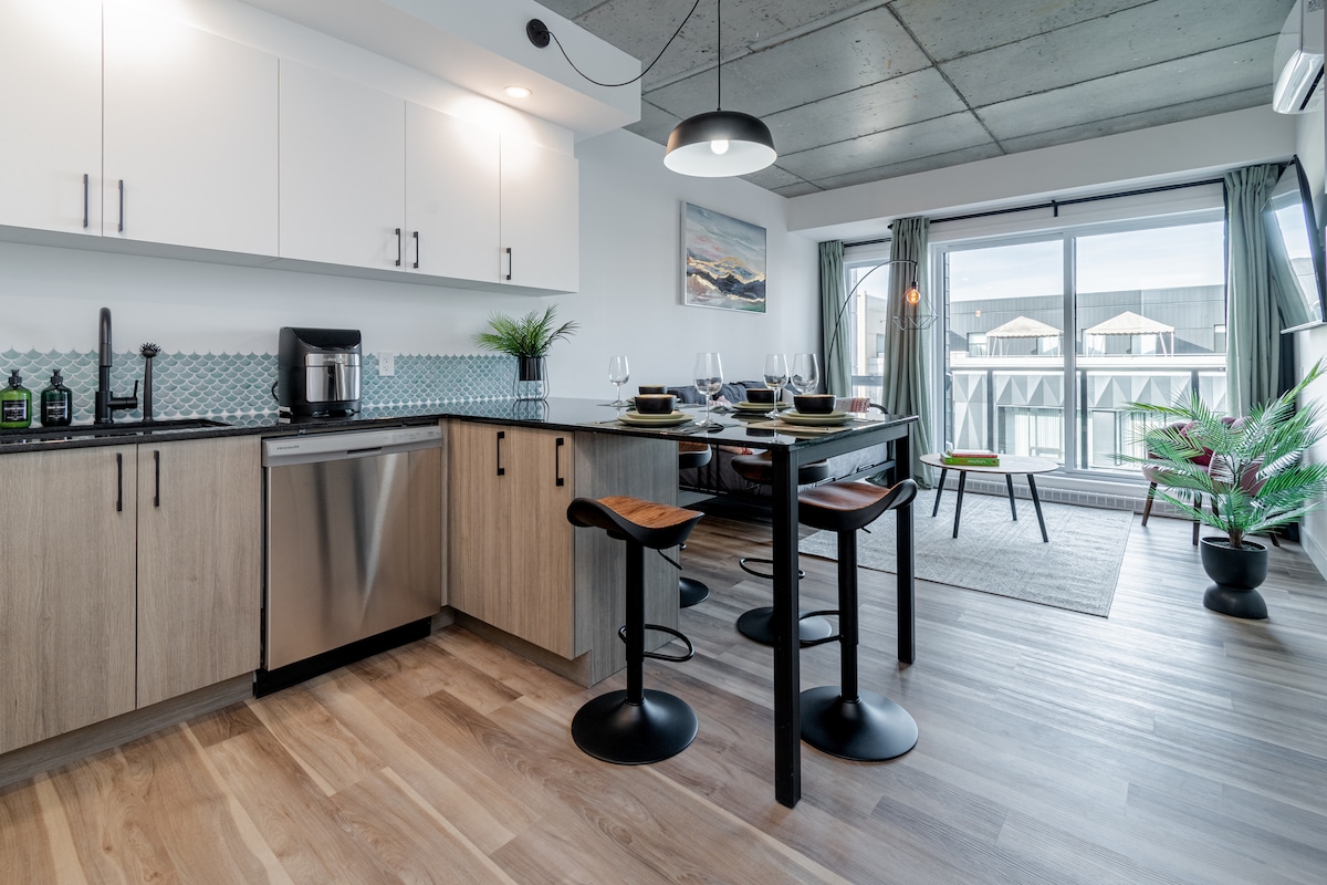 Come and enjoy an unforgettable stay in the heart of the Saint-Roch district in Quebec City. This modern and luxurious condo will charm you as much by its common spaces as by its interior design. ✧️ Indoor Parking included ✧️ Roof terrace with pool, dining area & outdoor fireplace ✧️ BBQ available year-round on the rooftop. ✧️ Fitness room ✧️ Bright and pleasant apartment ✧️ Fast wifi and work space ✧️ Just a 15 minute walk to Old Quebec