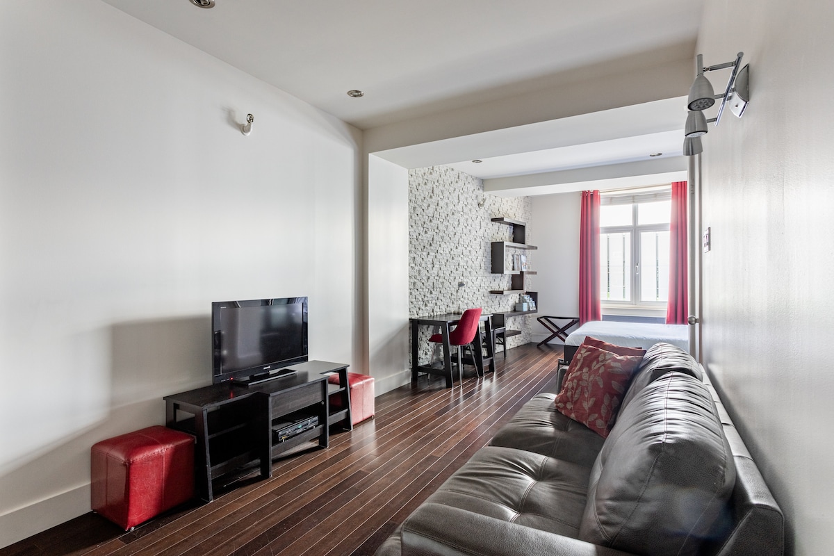 No d'enregistrement : 294070. Situé au coeur de Nouvo Saint-Roch, quartier branché du centre-ville de Québec. Sentez-vous à la maison dans ce studio de 40m2 entièrement rénové pour votre confort. Situé au dernier étage et surplombant la rue St-Joseph, à distance de marche des restaurants, bars, cafés, microbrasseries, épiceries, pharmacies, théâtres et boutiques branchées. Cuisine complète pour préparer vos repas.