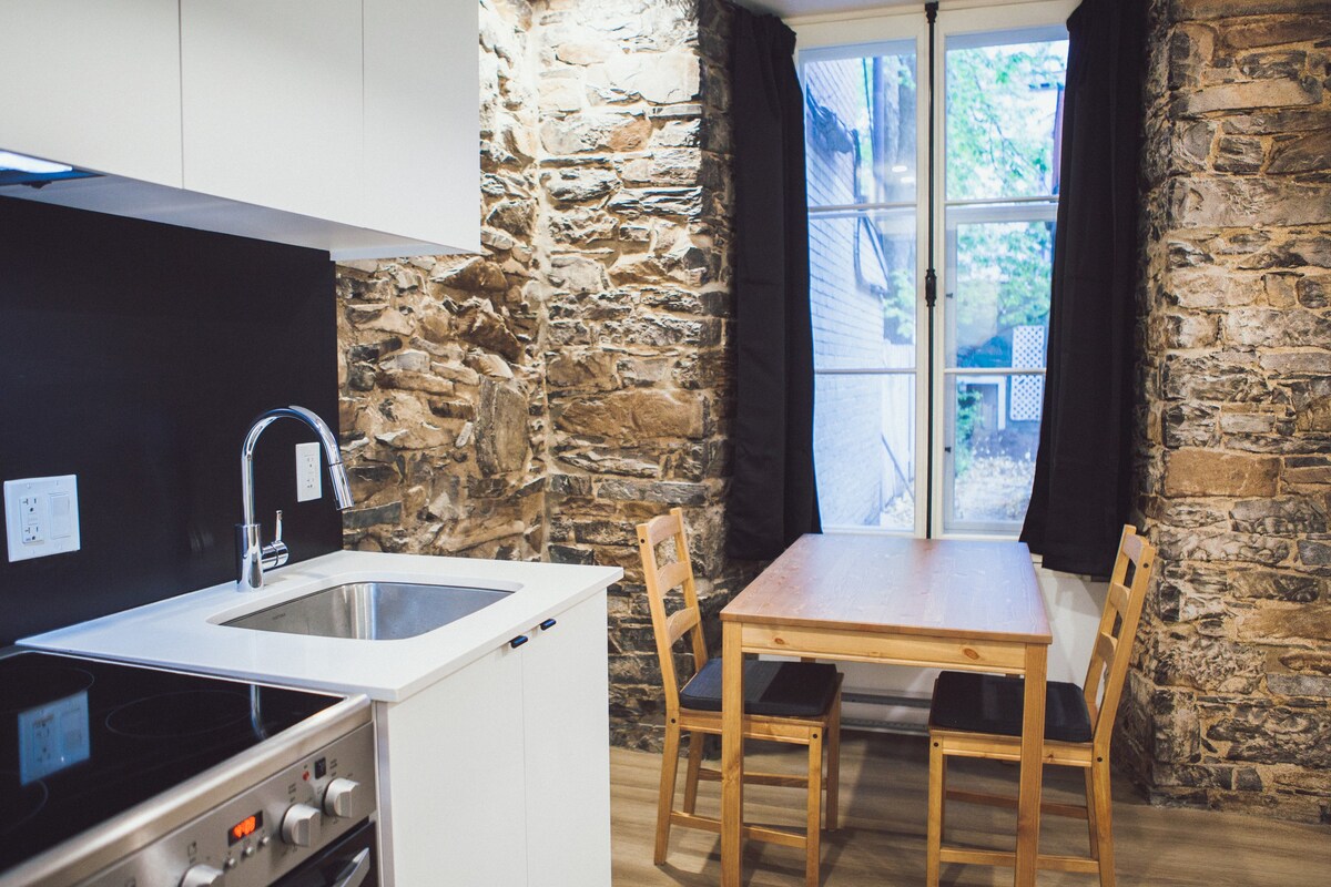 Situated in a lovely historic building in the heart of Old Quebec, offering modern accommodation with bricks and stone wall, Les Lofts 1048 is a great option for those looking for style and the perfect location. Make full use of this spacious two level loft. To enhance your stay even more, you have access to the rooftop patio. Fully equipped kitchen, dining area, comfy living room and your own washer & dryer. Elevator on site.