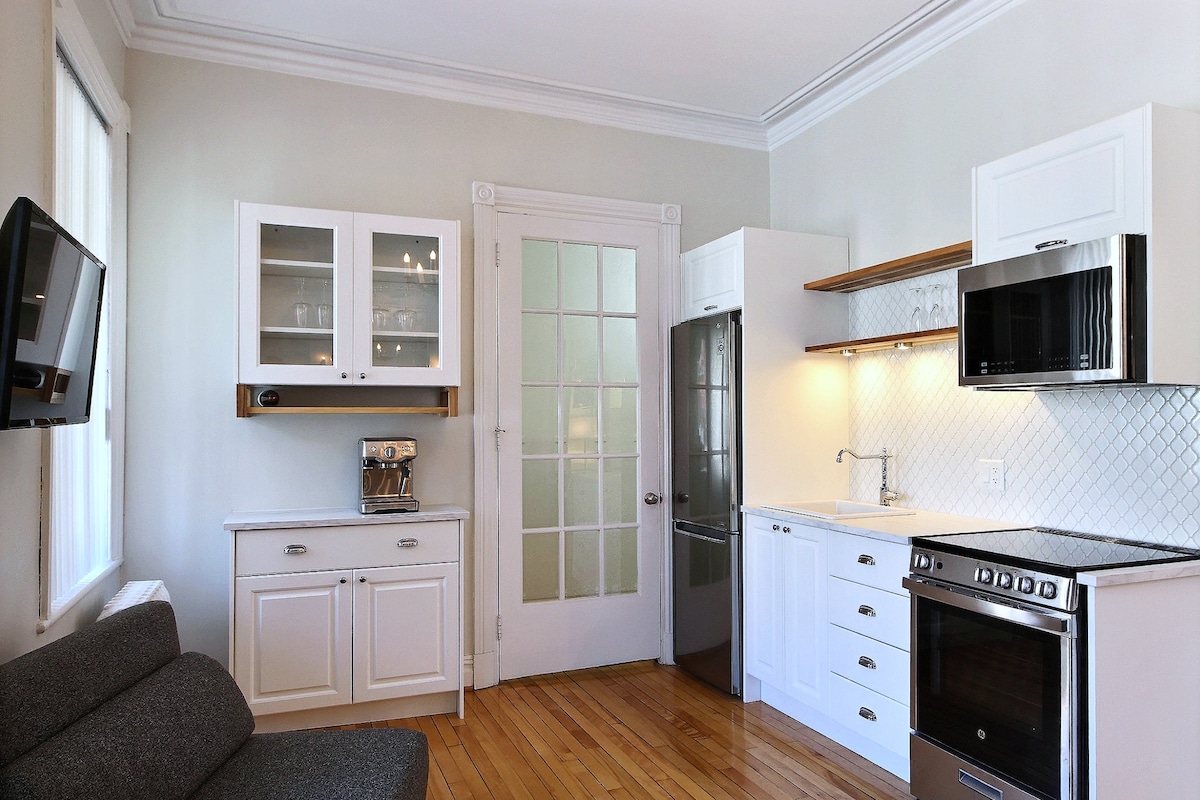 Studio demi sous-sol luminosité faible et insonorisation limitée dans une maison résidentielle avec porte indépendante et stationnement. Arrivée autonome sans contact proprio. Possède un lit Queen, une causeuse, une TV (cable de base), bureau de travail, salle de bain avec douche et un coin cuisinette (frigo, toaster four, micro-onde, cafetière kurig, bodum) pour déjeuner /réchauffer un repas seulement (aucune cuisson possible à l’intérieur avec un appareil d’appoint). WiFi. CITQ #310834