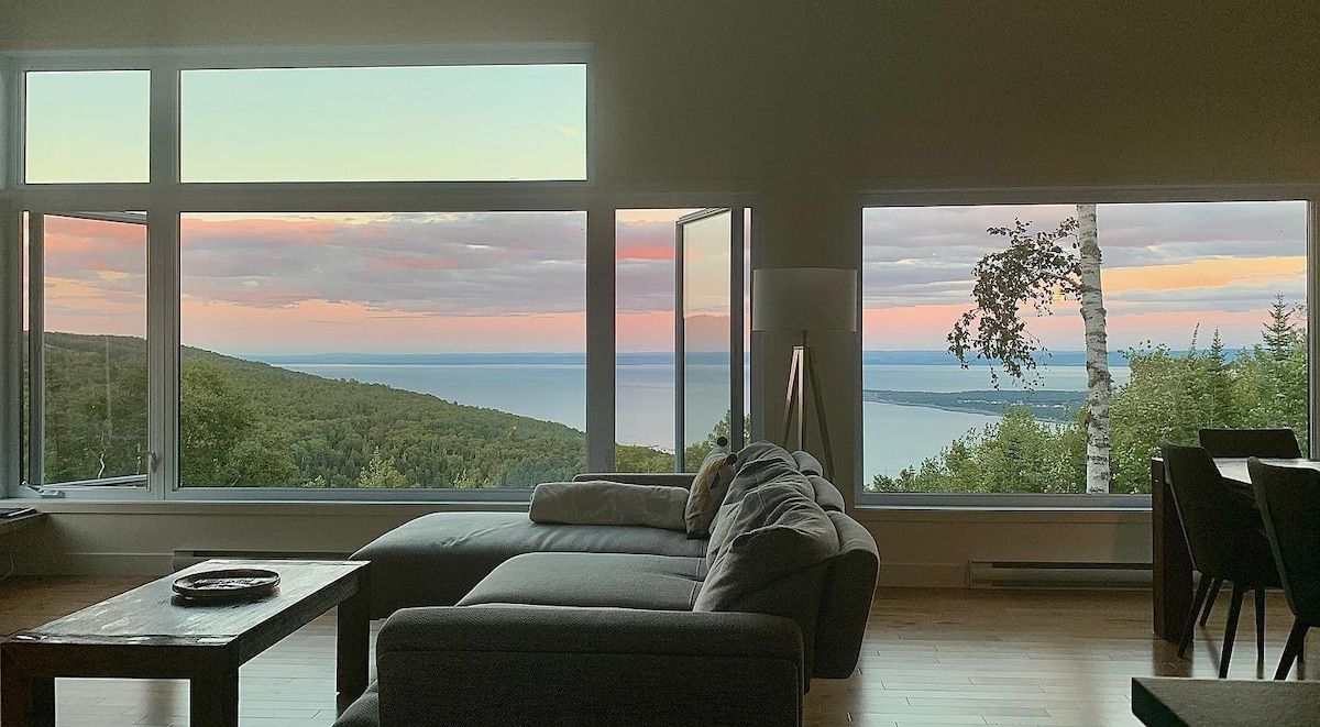 POURQUOI CHOISIR LE QUARANTE-DEUX Situé à flanc de montagne et offrant une magnifique vue panoramique, le Quarante-Deux vous offrira tout ce dont vous avez besoin pour vous évader en famille ou entre amis. Idéalement situé à 1h de Québec, à 10 minutes du Massif de Charlevoix et à proximité de la ville de Baie Saint-Paul et ses attraits. Confortable et accueillant, nous en prenons grand soin et en tirons fierté. Nous espérons qu'il saura vous plaire autant qu'à nous!