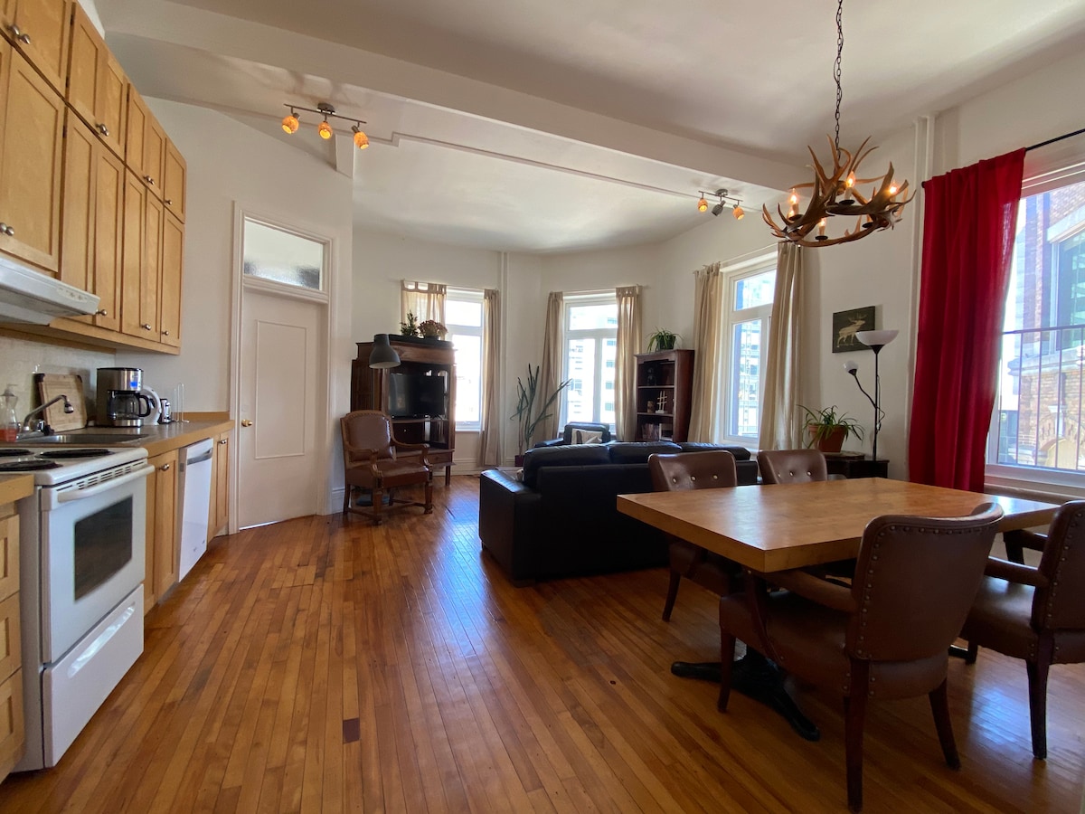 No d'enregistrement : 294070. Situé au coeur de Nouvo Saint-Roch, quartier branché du centre-ville de Québec. Sentez-vous à la maison dans ce studio de 40m2 entièrement rénové pour votre confort. Situé au dernier étage et surplombant la rue St-Joseph, à distance de marche des restaurants, bars, cafés, microbrasseries, épiceries, pharmacies, théâtres et boutiques branchées. Cuisine complète pour préparer vos repas.