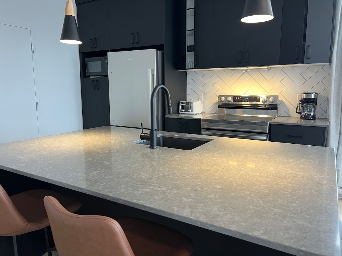 Come and enjoy an unforgettable stay in the heart of the Saint-Roch district in Quebec City in this modern and luxurious condo. You will be charmed by both its common areas and its refined interior design. ✧️ Parking space provided ✧️ Roof terrace with pool, dining area & outdoor fireplace ✧️ BBQ available year-round on the rooftop. ✧️ Fully equipped gym ✧️ Bright and comfortable apartment ✧️ High-speed Wi-Fi and dedicated workspace ✧️ Only a 15-minute walk to Old Quebec