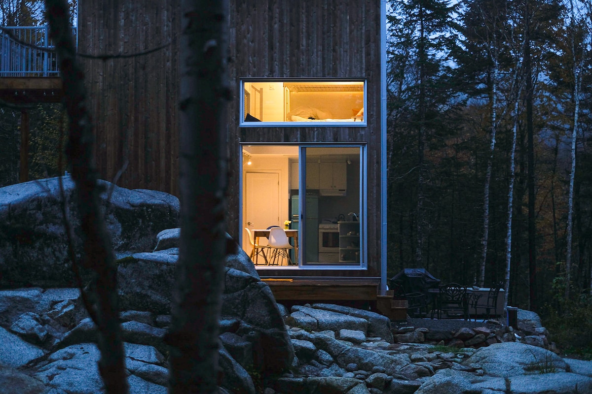Adoptez le mode de vie «Bike & sleep» et reconnectez-vous à la nature grâce à une vue à couper le souffle sur le coucher de soleil et les montagnes. Un chalet de style tiny-house tout équipé pouvant accueillir 4 personnes. Depuis son belvédère privé, venez vivre l’expérience glamping à plus de 520 mètres d’altitude dans un décor féérique. *Traction intégrale exigée ou VUS avec pneus neige du 1er nov au 30 avril sinon un service de navette est disponible ($)