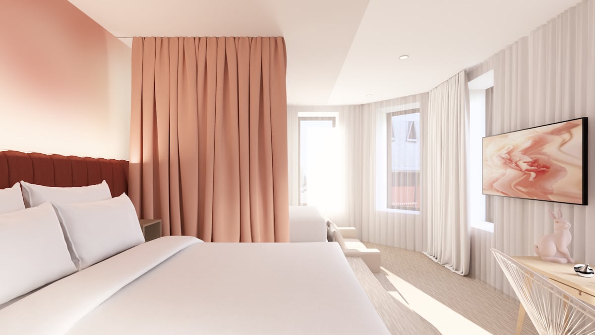 Cette chambre spacieuse et élégante est l'endroit parfait pour vous détendre et vous ressourcer. Décorée dans des tons doux et apaisants, Rose hôtel invisible vous offre dans cette unité complète un design contemporain et chaleureux en plus d'un confort absolu grâce à sa literie de haute qualité. Un petit coin salon, une cuisine toute équipée et de nombreux équipements modernes feront votre bonheur après une journée de découverte en ville!