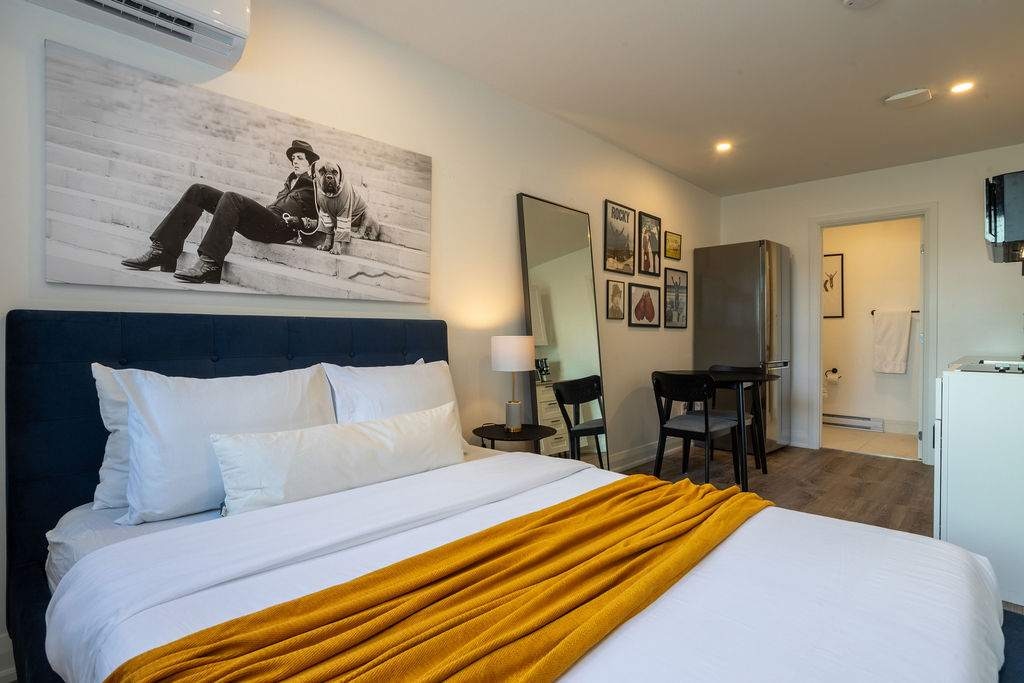 Stay in comfort at The Pierce Hotel – a 650 sq ft suite in downtown Montreal 🚪Self-check-in with your Boarding Pass 🛏️ King-size bed with memory foam mattress 📺 Two Smart TVs 🍳 Fully equipped kitchen with stove, oven, fridge, dishwasher, and Nespresso machine 🧺 In-unit washer & dryer 🚗 Nearby parking recommendations on your Boarding Pass 🧳 Luggage storage options nearby ⏰ Early check-in or late check-out upon request Prime location surrounded by restaurants, shops, and cultural hotspots