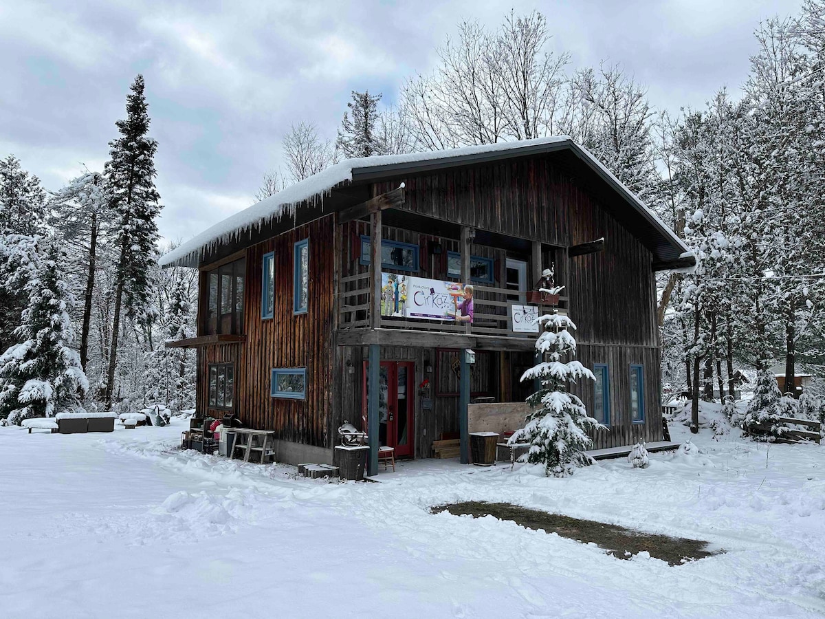 Chalet en pleine nature avec spa Venez vivre une expérience inoubliable dans ce chalet chaleureux, niché au cœur de la nature, parfait pour un séjour en famille ou entre amis. Situé à seulement quelques minutes des sentiers de randonnée, et d'activités en plein air en plus d'un accès à la Rivière St-Maurice, notre chalet peut accueillir jusqu'à 8 personnes dans un cadre idyllique. Veuillez prendre note qu'il y a un sofa-lit dans le salon. ***Le minimum d'âge pour réserver est de 25 ans***