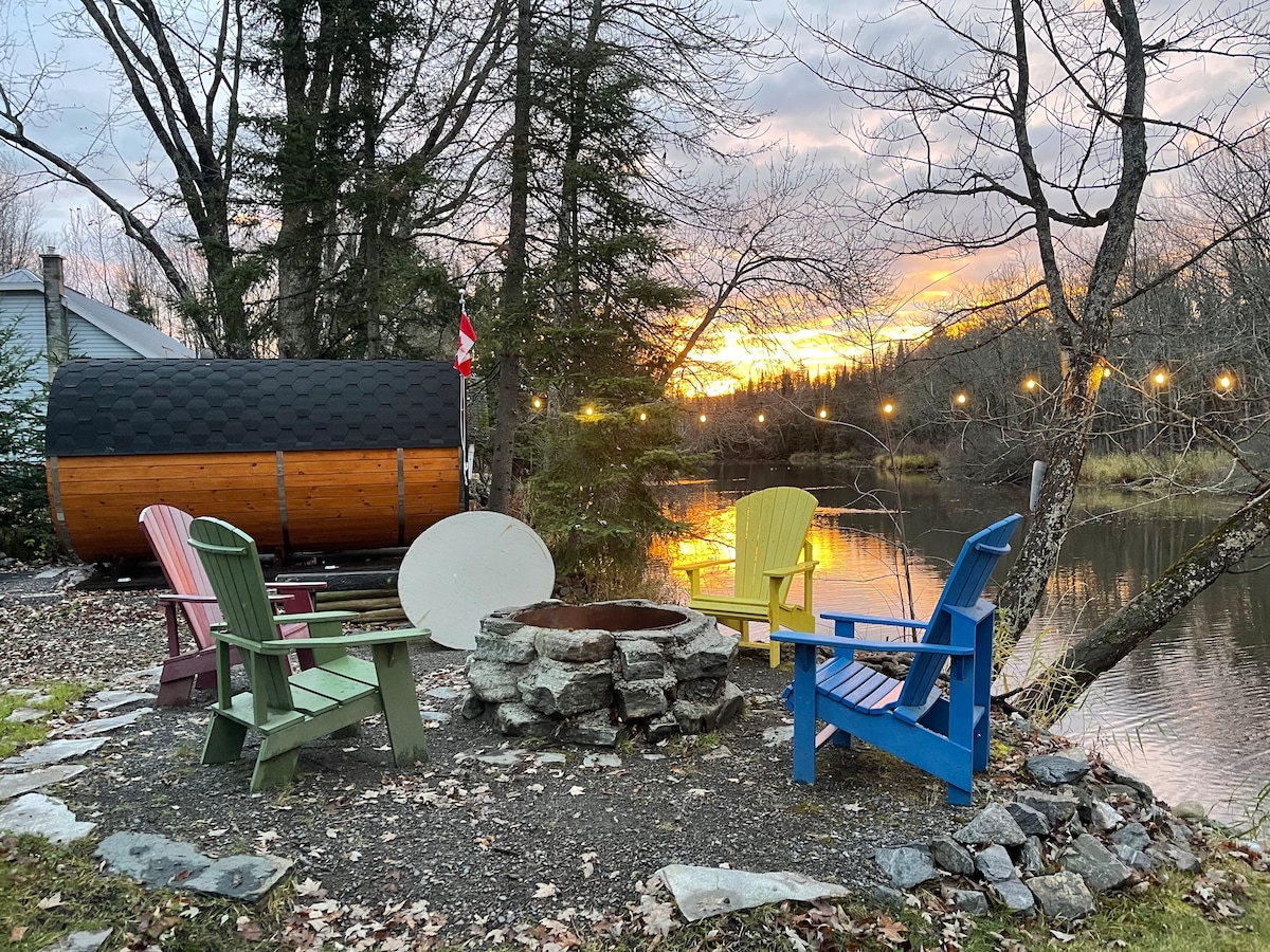 Discover the River Haus where luxury meets nature within the city limits. Enjoy a comfortable queen bed & quiet nights, dual shower heads, chef’s kitchen and a hot tub & sauna overlooking the river. Daily winter deer 🦌 sightings from your living room. Enjoy your morning coffee on the deck in the summer with wildlife 🐢 🦆 views. Just minutes from all amenities.