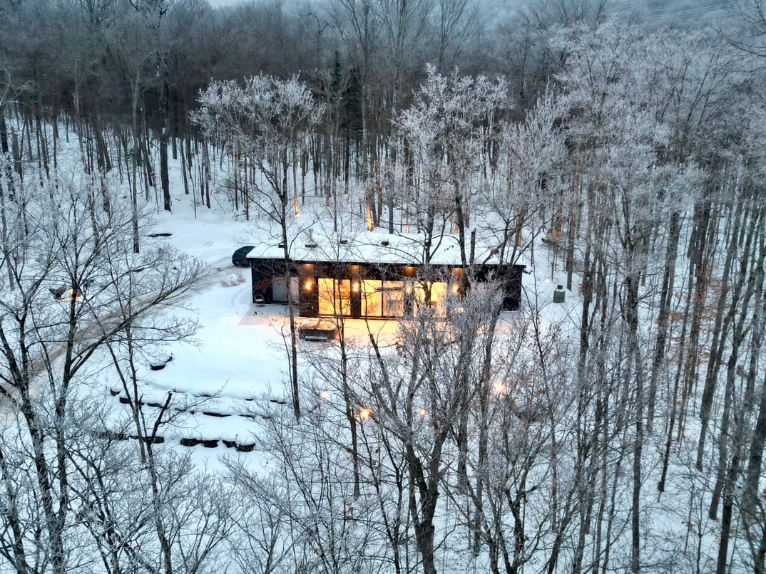 Welcome to La Khabine! This cozy, modern cabin comes with all you need to relax and connect with nature. Enjoy a glass of wine with the sound of a crackling fire in the wood burning fireplace. Take in the view of the forest through the surrounding floor to ceiling windows. Relax in the private outdoor cedar barrel sauna. Natural self-care products, firewood, laundry soap, and high-speed Wi-Fi are all complimentary. We hope you'll love our little cabin of windows as much as we do :)