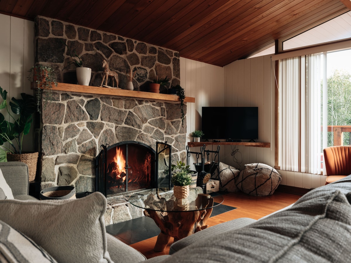 Grand chalet rustique et chaleureux : bord de l’eau, spa, foyer à bois intérieur et extérieur. Un lieu idéal pour relaxer en couple, en famille ou entre amis. Laissez-vous immerger dans la nature des Laurentides et venez profiter des baignades, kayaks et randonnées. A rustic and warm wooden chalet : waterfront, spa, wood-burning fireplace. Ideal place to relax in couple, with your family or friends. Be immersed in the nature of the Laurentides and enjoy the swimming, kayaking and hiking.
