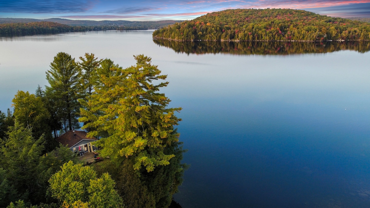 Charming and cozy lakefront on beautiful Lac Chapleau. Over 350ft of private shore. Spacious screened porch, large deck-private dock-sandy water access-fire pit and BBQ. 2 Bedrooms: 2 Queen-1 Double&Single. Indoors: Fully updated kitchen-4 piece bathroom with heated floors- cozy wood-burning fire place. WiFi+TV. Close to grocery-hiking-biking-skiing. Only 40 min to Tremblant Village. *Sauna not operational and firewood is not provided.