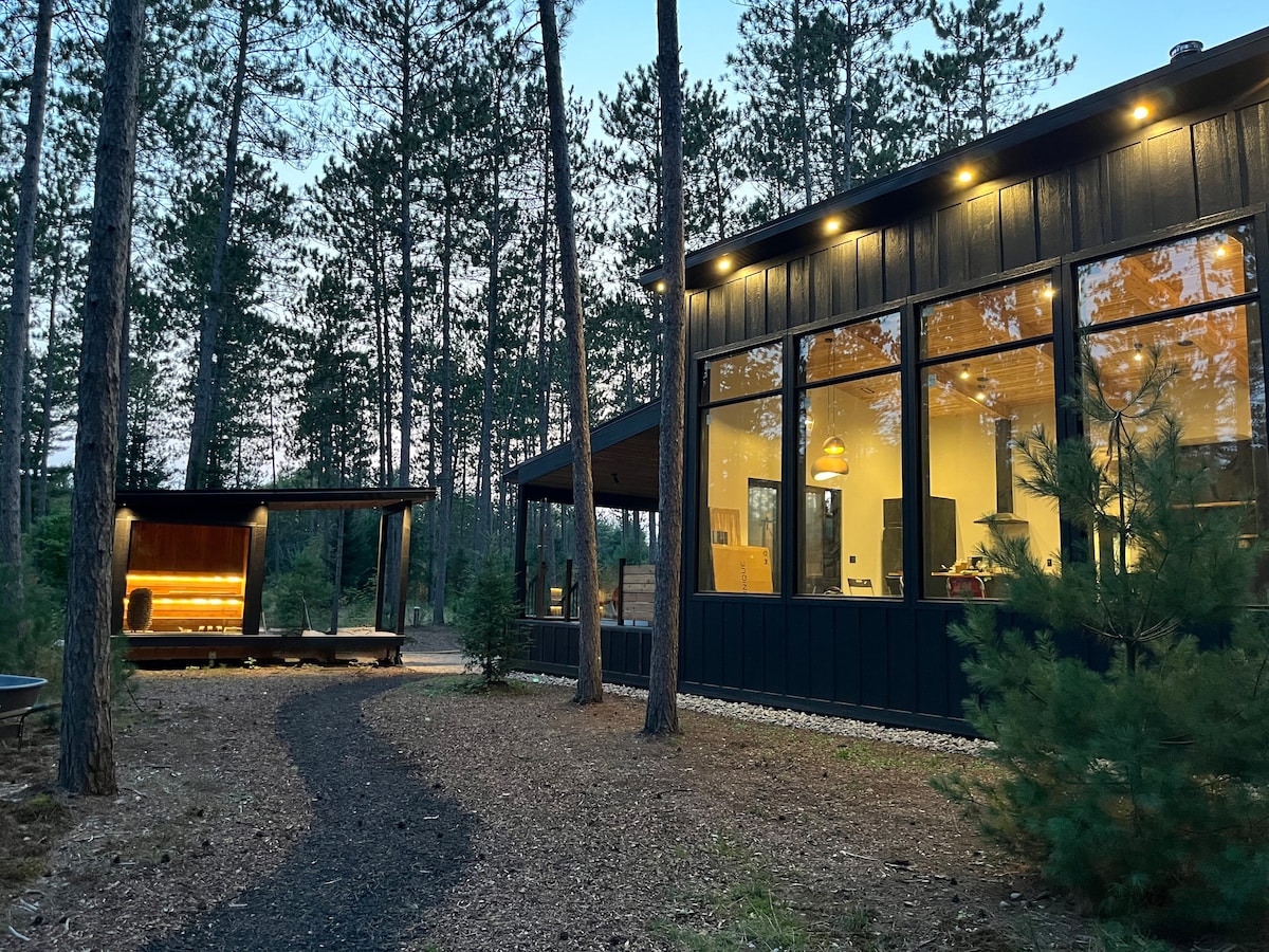 Welcome to La Khabine! This cozy, modern cabin comes with all you need to relax and connect with nature. Enjoy a glass of wine with the sound of a crackling fire in the wood burning fireplace. Take in the view of the forest through the surrounding floor to ceiling windows. Relax in the private outdoor cedar barrel sauna. Natural self-care products, firewood, laundry soap, and high-speed Wi-Fi are all complimentary. We hope you'll love our little cabin of windows as much as we do :)