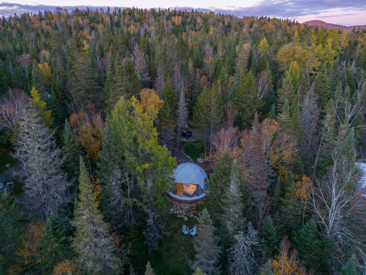 Visit our Airbnb profile to discover our 6 private domes! : ) Welcome to Domaine l'Évasion! Enjoy a romantic getaway under a starry sky. Relax in your private 4-season spa, nestled in the heart of a coniferous forest, lulled by birdsong. ★ 25 minutes to Tremblant ★ Private 4-season spa ★ Indoor Gas Fireplace ★ Fire pit ★ Picnic area with BBQ ★ Hiking trail ★ Private shower ★ Full kitchen ★ AC