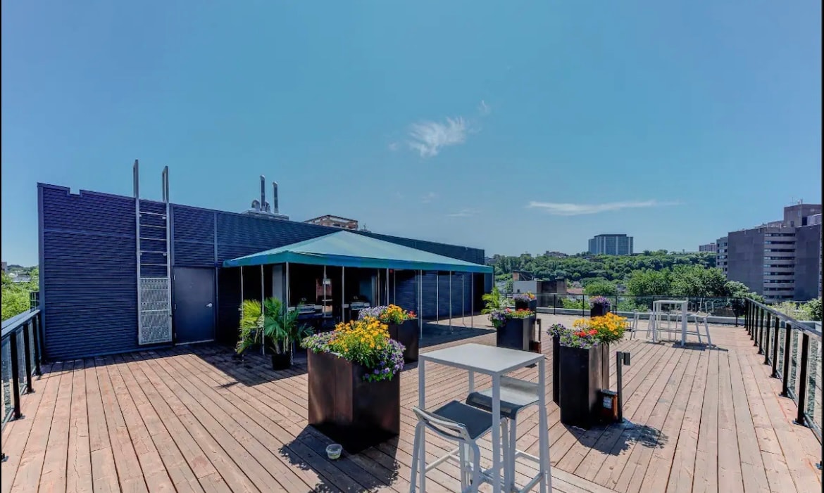 Come and enjoy an unforgettable stay in the heart of the Saint-Roch district in Quebec City. This modern and luxurious condo will charm you as much by its common spaces as by its interior design. ✧️ Indoor Parking included ✧️ Roof terrace with pool, dining area & outdoor fireplace ✧️ BBQ available year-round on the rooftop. ✧️ Fitness room ✧️ Bright and pleasant apartment ✧️ Fast wifi and work space ✧️ Just a 15 minute walk to Old Quebec
