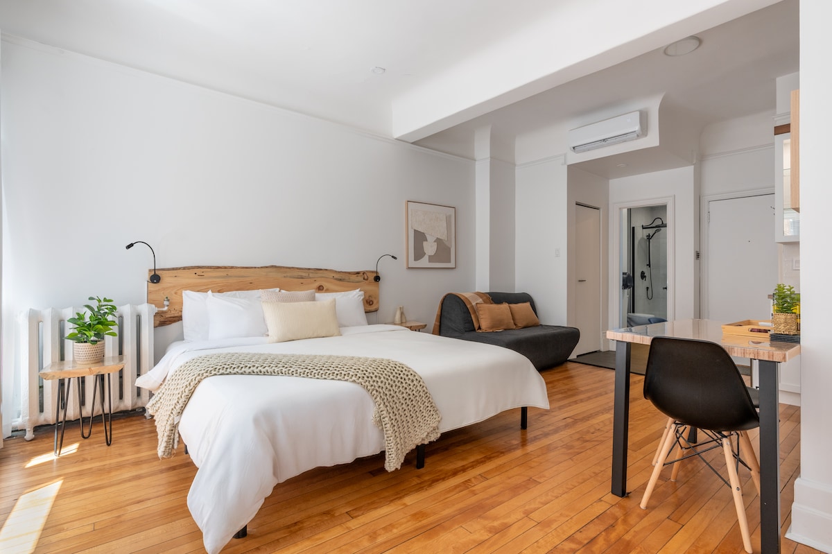 Cute and comfortable studio apartment freshly renovated. Fully equipped kitchen, dining space for 2, double size deep sofa to watch movies on the TV screen , queen size bed, shower (height of 6’6’’/2m max)… etc. Everything to make our apartment your base while you explore everything Quebec City has to offer.