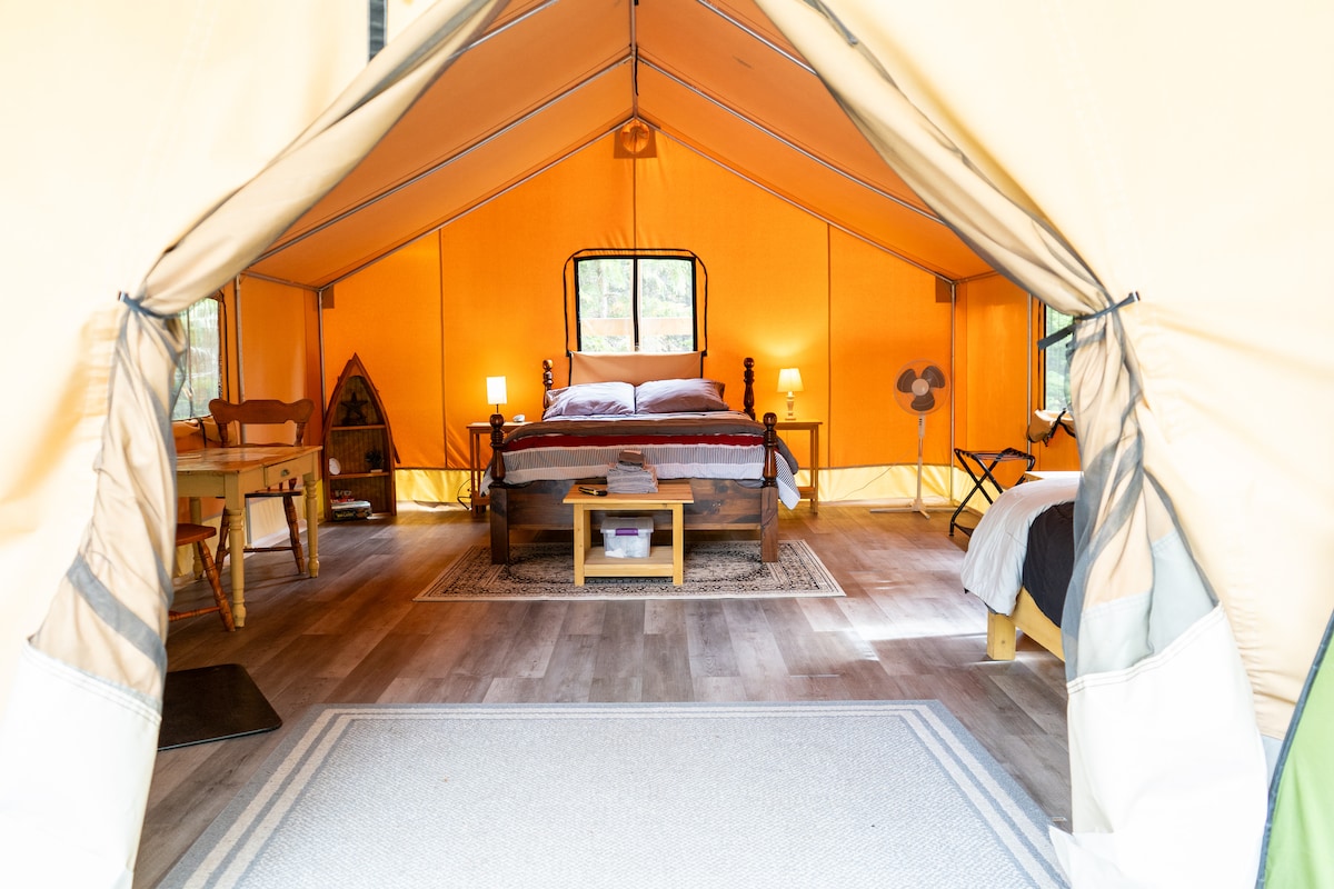 Escape to our unique retreat, where nature and comfort meet in a tranquil, off-grid setting. This "powerless" getaway promises an unforgettable experience. Sleep in the spacious, solar-lit tent featuring a cozy Queen bed with soft linens, a duvet, and fluffy pillows. Spend your day outdoors, evenings by the outdoor firepit under a starry sky, BBQ’d dinners & breathtaking views of the wilderness. If you’re passionate about camping and the outdoors, this property is your perfect sanctuary!