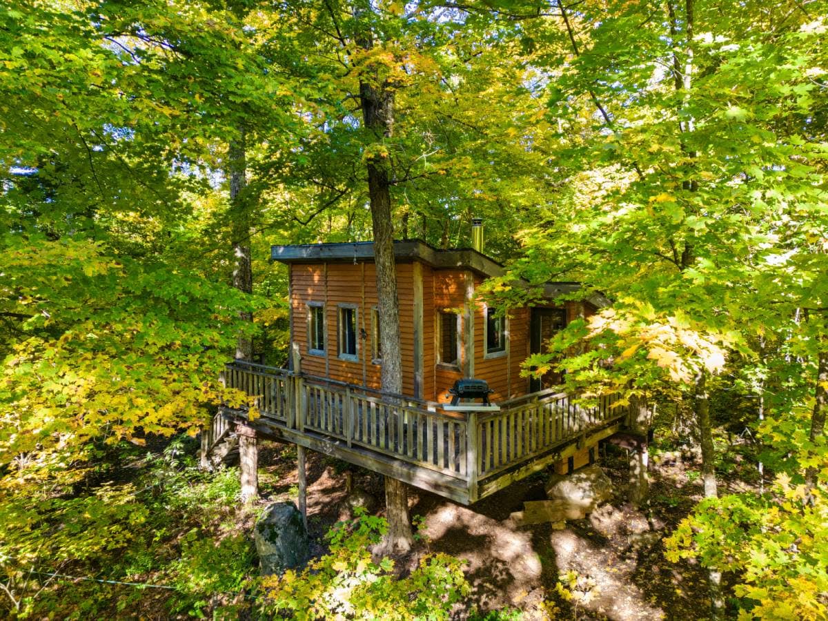 We hope to fulfill your treehouse fantasy. The treehouse is a unique minimalist experience for those seeking quiet solitude in the Gatineau hills. Includes all the amenities of home to offer the most comfort in all seasons. Walking distance from Le Belvedere wedding reception centre. One of a kind hand hewn log treehouse is an inspiring and tranquil nature retreat. Establishment CITQ number: #295678