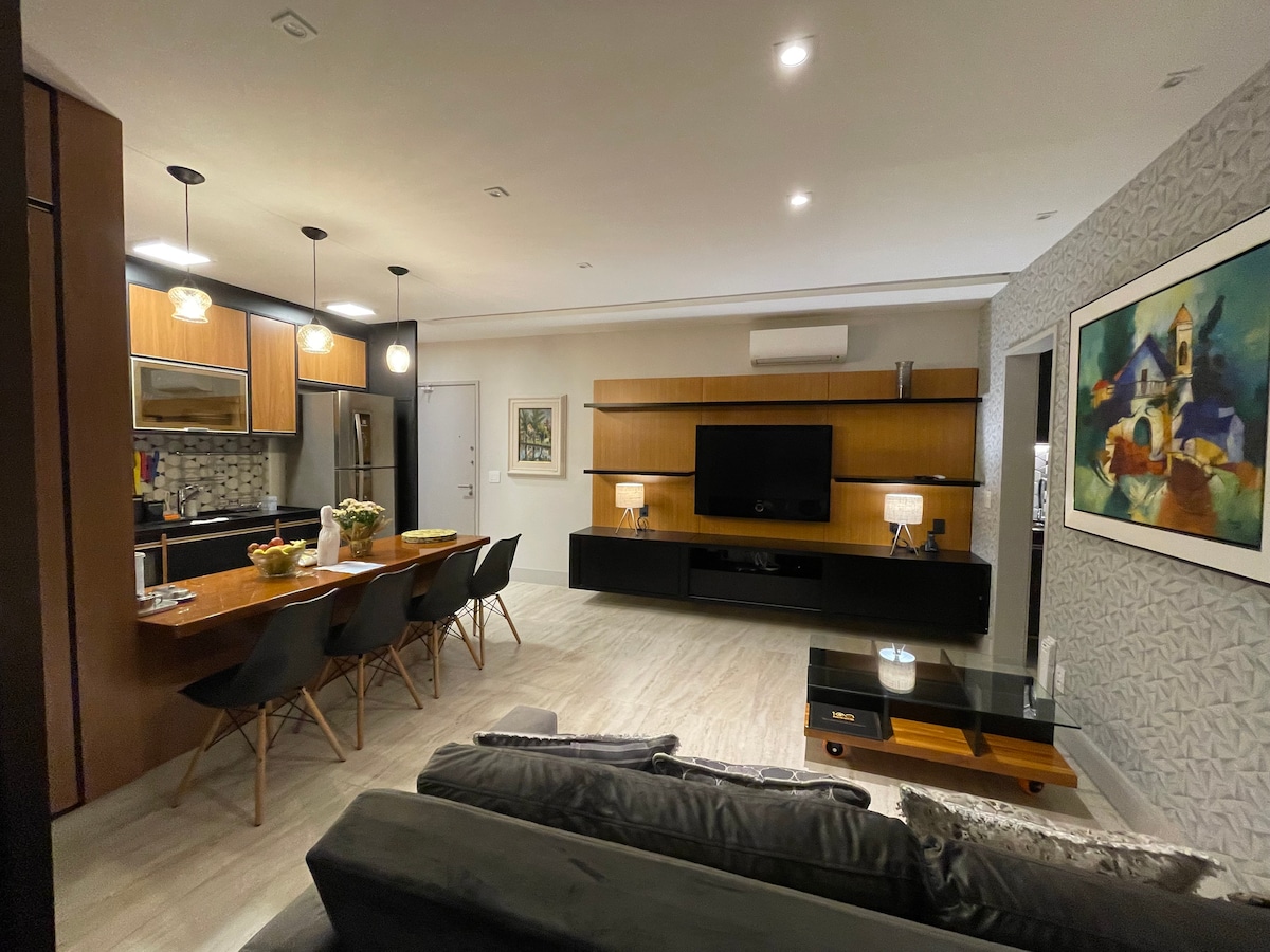 Leia as 4 regras da casa na seção "O que você deve saber" e "Mostrar mais". Destaques: - Limpeza diária do apartamento incluída - Apartamento recém reformado, com mobilia novinha - Infraestrutura do prédio com piscina, sauna, restaurante e academia - Portaria 24h/7d - Fechadura por senha - Smartv de última geração na sala - Wifi de alta velocidade - Acomoda até 3 pessoas, sendo 1 no sofá (sugerido para crianças) - Cozinha completa - Ao lado dos shoppings Leblon e Rio Design - 5m andando praia
