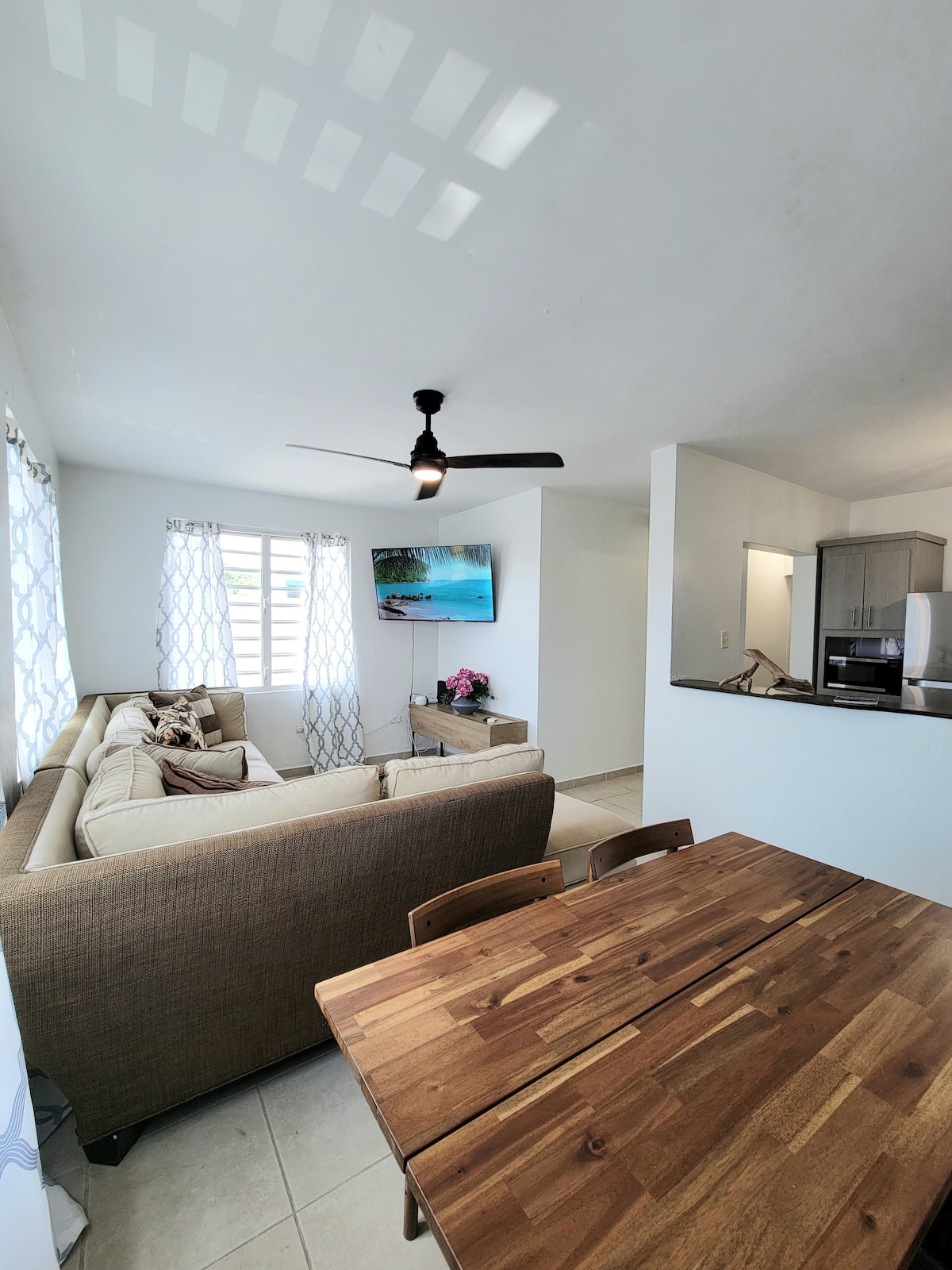 Comfortable apartment located in great part of town. Located in the back yard area of the main residence, along with two other apartments. Completely furnished; includes washing machine, TV, Internet and AC. WE HAVE SOLAR PANELS AND BATERRIES SO POWER OUTAGES DONT AFFECT US! Close to everything! Supermarket, Hospital, Pharmacy, Beach, Bio Bay, Ferry for Culebra/ Vieques and a lot more... all located within minutes (Driving distance)