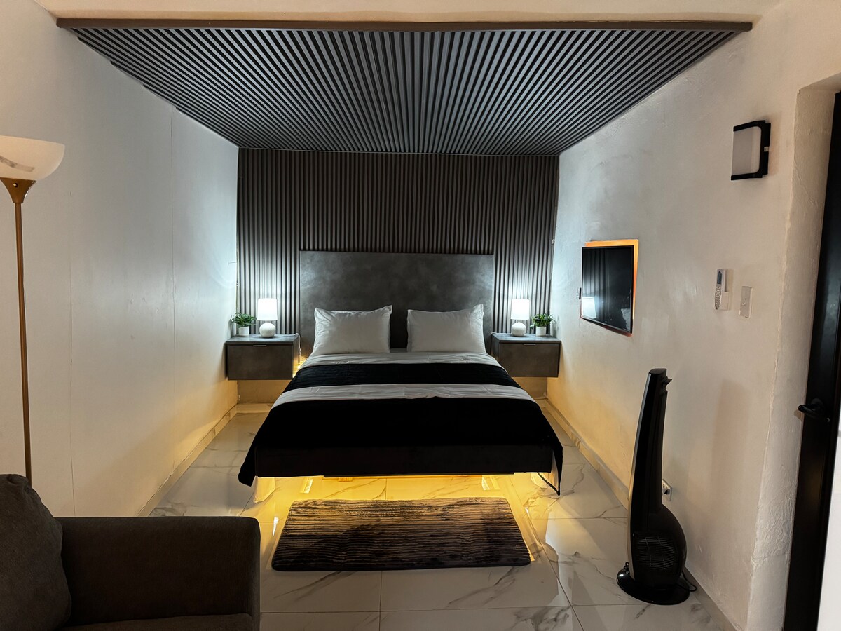 Precioso pequeño Apartamento totalmente independiente, (son 5 en total) TENEMOS PANELES SOLARES, con entrada independiente , cada 1 con dormitorio, baño, cocina, estufa , microondas, lavadora, secadora, aire acondicionado, estacionamiento decorado con murales, amplio patio exelente para barbacoa. Tv con cable y netflix . ¡Cerca de todo¡ Supermercados ,Frente al Hospital Hima San Pablo, Farmacias, a minutos de la playa Seven Seas