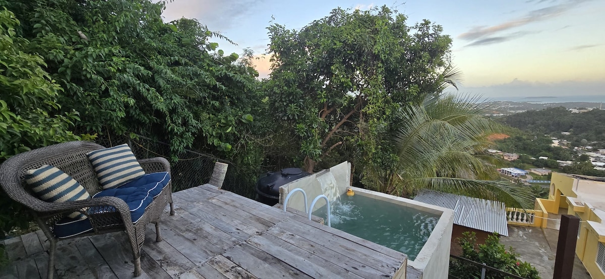 A private, cozy and welcoming environment with 3 rooms, 1 bathroom, fully equipped kitchen, gardens, hammocks, big patio with a wooden terrace, ten minutes away from the touristic river “charco frío” y “las tinajas” beaches such as Seven Seas, Playa Escondida, La Selva, Balneario La Monserrate in Luquillo and many gastronomic options, close to the docks and airport that go to Vieques and Culebra. An ideal place for families that travel and want to get to know the eastern area of Puerto Rico.