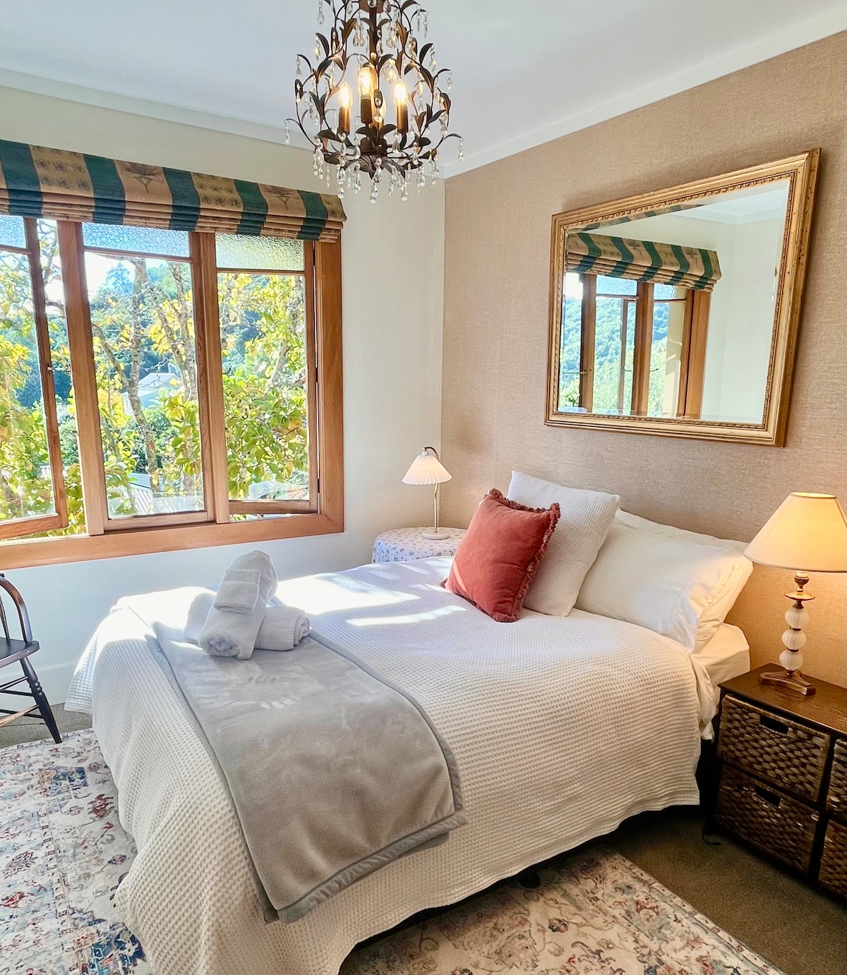Unplug and unwind, chilling between our two 1960's caravans nestled in bush in the heart of the Marlborough Sounds. Wake up to spectacular water views & enjoy the tranquility of the native bush & birdsong. This unique setup offers one caravan as a bedroom and a separate kitchen/living room caravan. A diesel central heating system has been installed to heat both. Enjoy the rustic charm & views from the hot water bush shower & the novelty of the separate 'loo with a view' in the hut above.