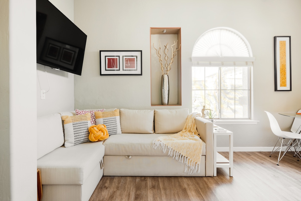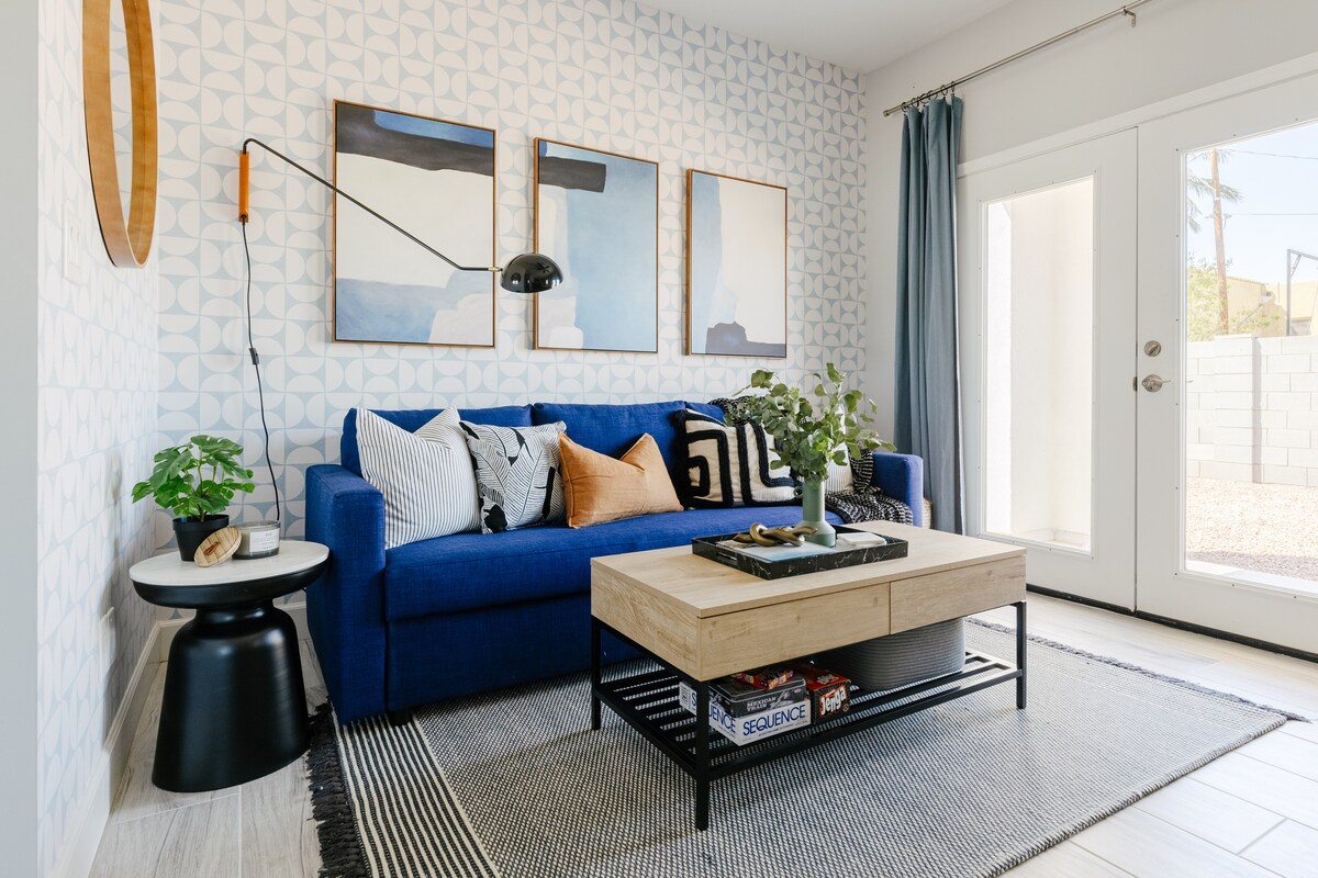 Enjoy our newly remodeled and professionally designed 1 bed, 1 bath private guesthouse. The stylish and cozy suite includes a full kitchen with brand new appliances, a work space, living room, and bedroom with a closet and ensuite bathroom. It is located just 15 mins away from major destinations, such as ASU, Sky Harbor International Airport, and fun attractions. We offer free parking on the property, in addition to wi-fi, Roku TV and toiletries. We would love to host you!
