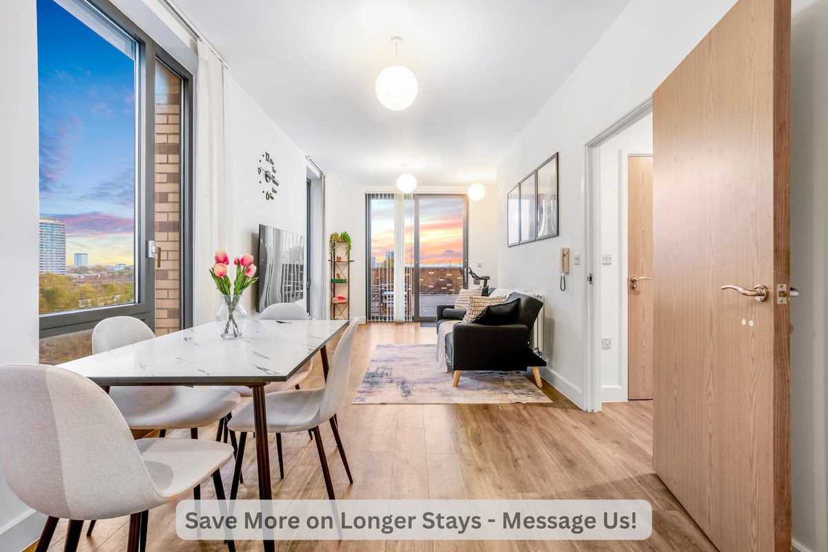Prime Location | Olympic Park | Stratford Relax in this stylish serviced apartment in London’s vibrant Olympic Village. Once home to Team USA during the 2012 Games, this fully furnished, modern apartment is perfect for contractors, families,or friends seeking comfort and convenience. Enjoy beautiful scenic views over the rooftops, internal courtyard, and beyond from the top floor balcony. Located in one of London’s most dynamic areas, the property offers everything you need for a memorable stay