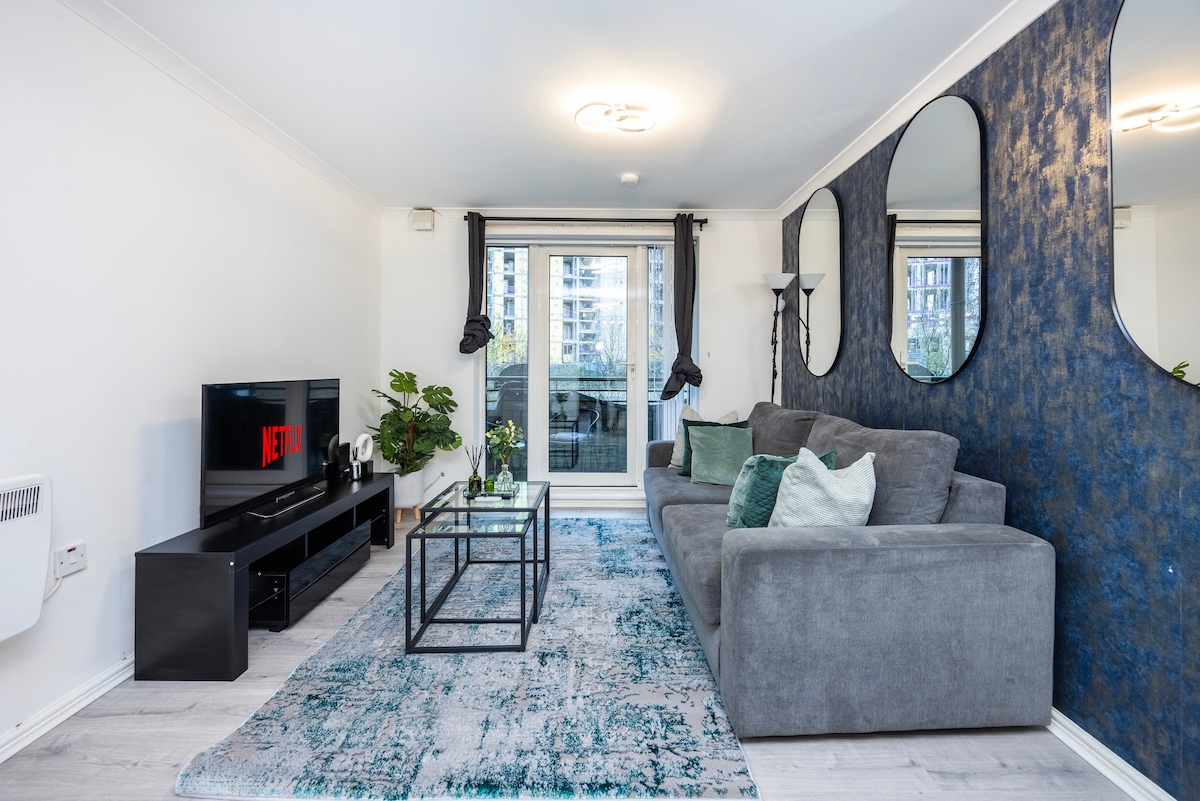 Luxury apartment in Royal Docks (London , Newham) with amazing views of The Thames, Royal Docks, o2 Arena, iconic skyline of Canary Wharf , Canning Town & London city 5 mins walk - EXCEL LONDON 1 min walk- IFS CLOUD CABLE Car for Greenwich O2 5 mins walk- Custom House station (Elizabeth line) for Central London in 8 mins , Canary Wharf in 4 mins & direct trains to Heathrow airport) 1 mins walk to Royal Victoria DLR station City airport - 7 minutes Of course all of London is easily accessible