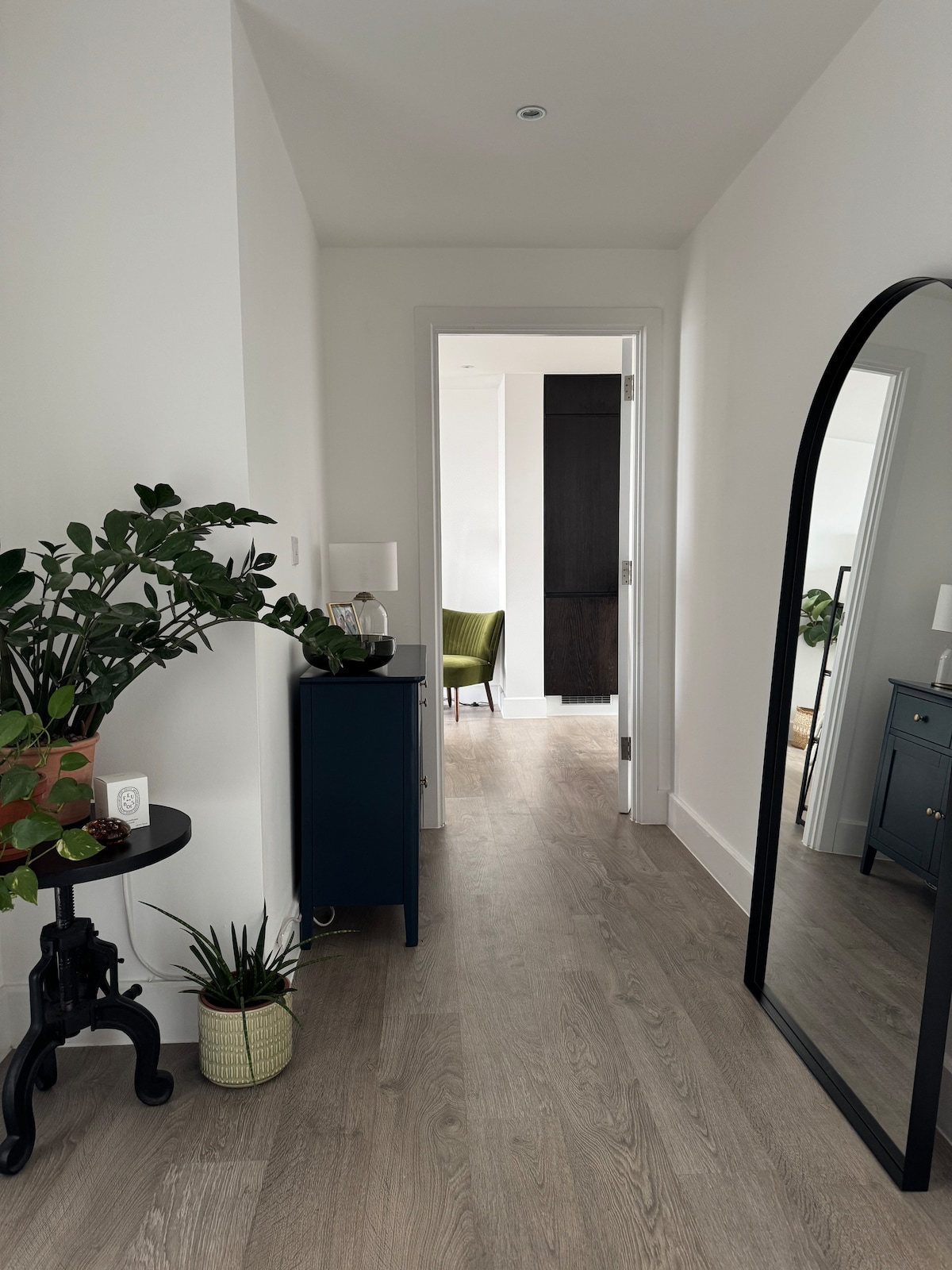 Beautiful, peaceful, one bed in a fabulous location near Mare St and Victoria Park. 5 min walk to Cambridge Heath station & London Fields, 15 min (or 5 min bus/cycle) to Bethnal Green tube. Lots of buses nearby, also e-bikes & electric car charging just outside. Off road parking space with grass and trees out front. Mid century modern style with brutalist details, suits those who value an intentional sanctuary. Lots of plants & light! Very comfy king bed. Vitamix blender for those who know 😍