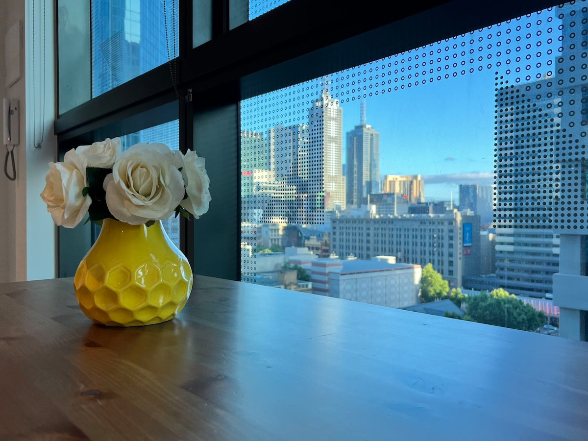 Stylish large one-bedroom apartment at 36F located in the heart of CBD, warmly decorated and tidy environment, nice and cozy place to stay, study room can be used as a office zone, Free high speed WiFi, very close to Melbourne Central Station, Victoria Market, supermarket, trams, etc. here is a wide range of high class restaurants and hotels. Shopping brunch and entertainment are all catered for. Netflix TV. Make full use of luxury amenities such as the pools. Excellent service feel like home.