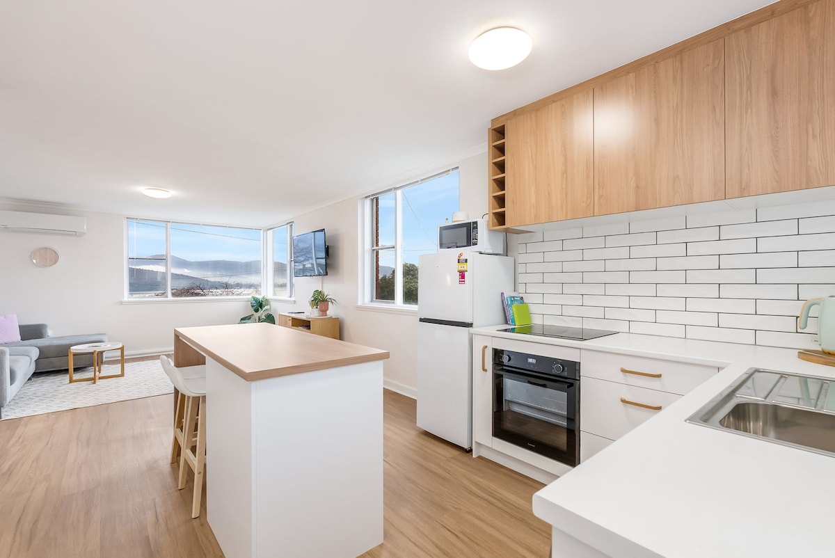 Indulge in comfort in your contemporary NoHo (North Hobart) apartment- sunny, stylish, and spacious. Free off-street parking! Fast WiFi, making it an excellent space for work stays. Watch the sun rise from the comfortable queen bed, made with an Australian Wool Topper. Enjoy a fresh brewed morning coffee from the well-appointed kitchen. The bathroom features a huge walk-in shower, and luxury toiletries. Relax with an afternoon drink in private sunny courtyard. Free, secure luggage storage!