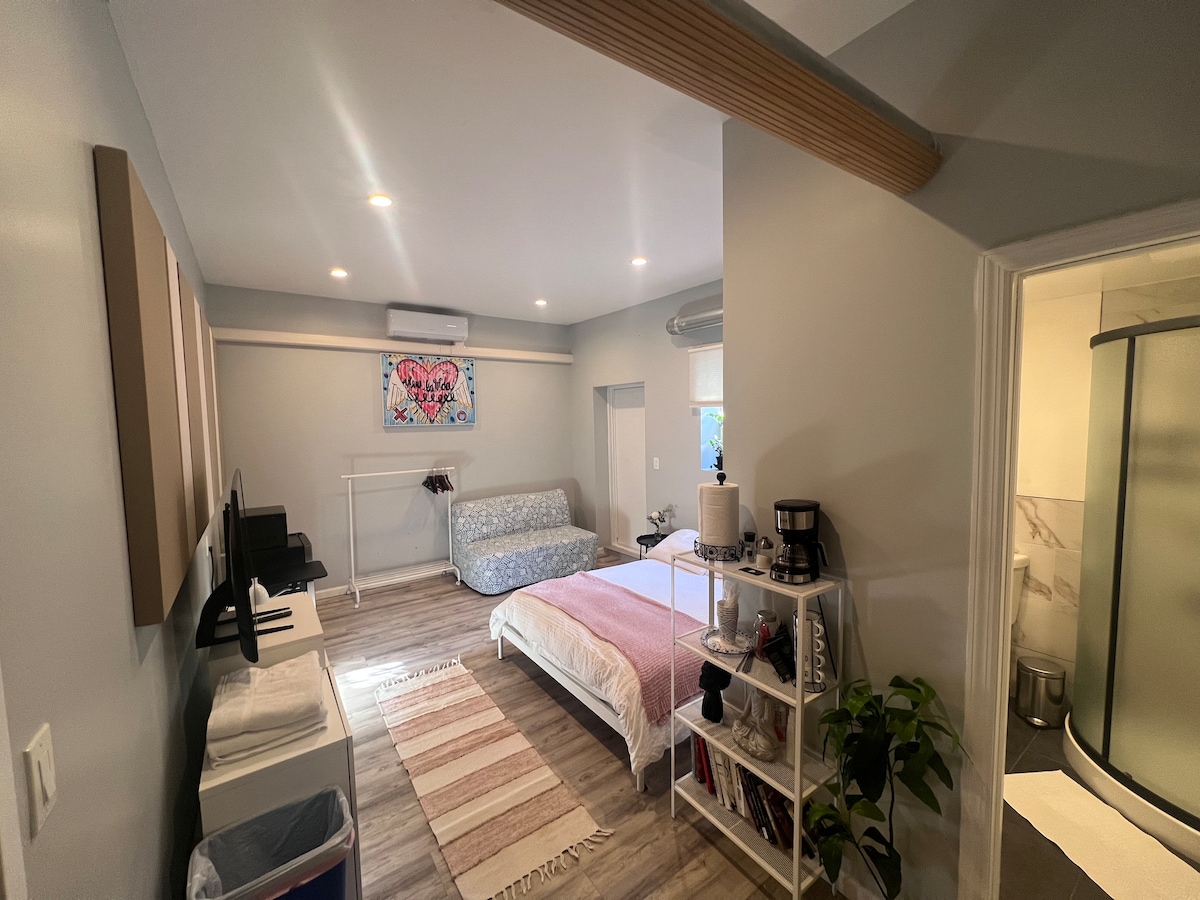 This cozy space includes: A private living area 🚽🚿An en-suite bathroom (exclusively for your use within your private space) ❄️🔥Two separate AC units for personalized comfort in each area Plenty of natural light and a pleasant view A mini fridge and microwave for your convenience We are 35 mins drive away from JFK and 11mins from LGA. 🚌 Bus station Q65 and Q25 are 5 mins walk away. 🚇 We are 13-minute bus ride away from the Flushing Main Street 7 Train main subway station