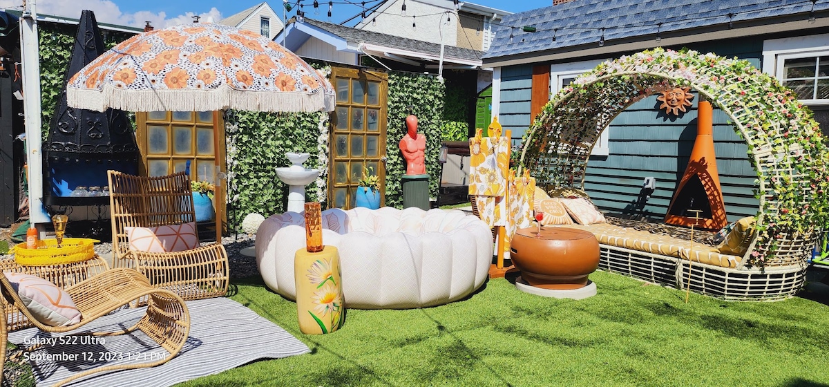70s eclectic tiny studio designed with 1 of a kind finds. 1 block from the bay and 3 blocks from the beach/surf/skate. Their is a sofa bed and a queen loft bed..your choice. small kitchenette and private bathroom. Backyard and hottub is a shared space with myself and / or other guest. I also have 2 other spaces on property "twistedvintageny."..."Tinytwistedvintagepolkadotrm". check them out. may fit ur needs better