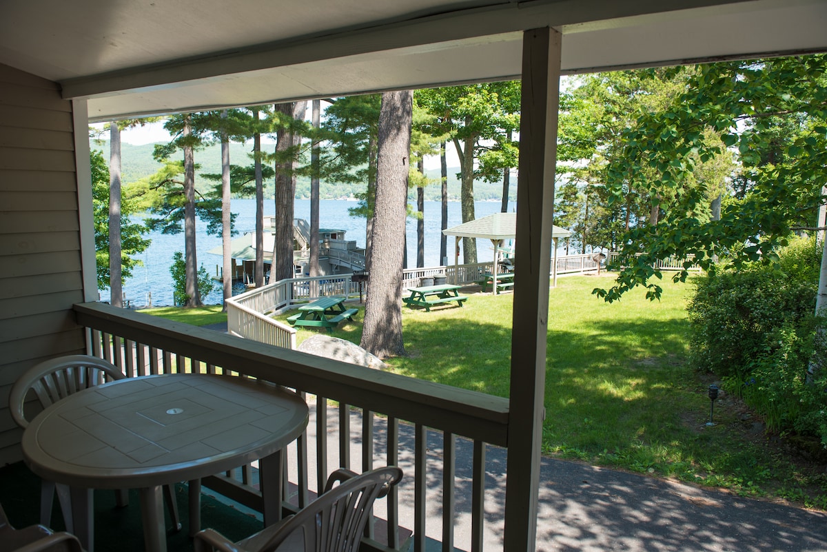 This is your chance to experience the beauty of Lake George at an unbeatable price. Our unit, perfect for 2 guests, features a cozy queen bed, a fireplace full equip kitchen, living room ,sofa sleeper private barbecue and fire pit and sliding glass doors that lead to your own private patio with stunning lake and mountain views.