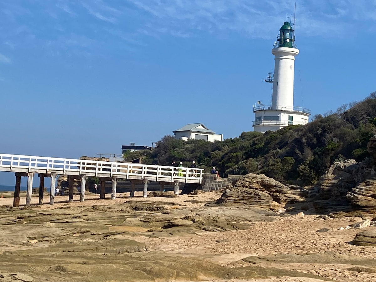 A light filled yet cosy two-bedroom cottage, only 500 meters from the front beach. We have a full kitchen, and the pantry is stocked with your foodie basics. Outside a spacious backyard with BBQ and firepit. A twenty-minute stroll along the promenade will lead you to our historic lighthouse, shops, cafes and wine bar (a couple of minutes if by car). For our restless guests, walking trails, bike trails, golf club, a surf beach and many other places to discover. Check out our welcome booklet!