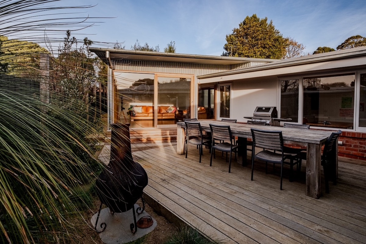 Family Beach House - walk to beaches, shops & parks. Relax in this renovated and light-filled home on a quiet, tree-lined street close to the beach. Just a short walk away, you'll find the Point Lonsdale Front Beach, coastal tracks and cafés. The place is fully fenced and there is a spacious lawn area and garden. Relax with a coffee in the morning on the north facing deck and in the afternoon enjoy the front garden after a day of exploring. Ideal for families and smalll groups.
