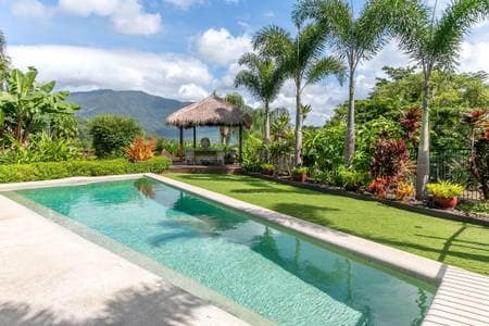 Magical balinese inspired eco-luxury poolside retreat for unforgettable experiences for families & groups so close to Noosa beach, Eumundi markets, the Doonan & the golfcourse! Indulge in tropical nature in this unique "treehouse" with breathtaking views & outstanding design! Meditate, do yoga, relax or visit Hastings Str, go surfing or swimming with your kids! Highlight: The Outside bathtub Watch "Experience the Junglehouse Noosa" (UTube) Contact me for retreats, elopements, or celebrations