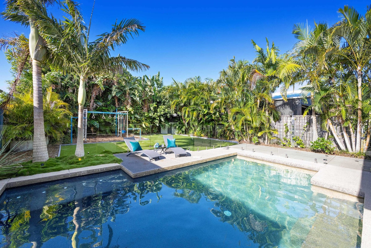 Gorgeous resort style home 200 metres from Maroochy river. Spacious open plan living overlooking the alfresco and pool area. Perfect spot for a family getaway with Multiple living areas. The home has a beautiful ambience with lovely views to Mt Coolum. 4 bedrooms with ensuite and walk in robe. Separate toilet and bathroom and washroom. The kitchen is stocked with all the tools you need to cook a feast including a teppanyaki plate and gas cooktop. Fully Fenced yard. ALL PETS TO BE APPROVED
