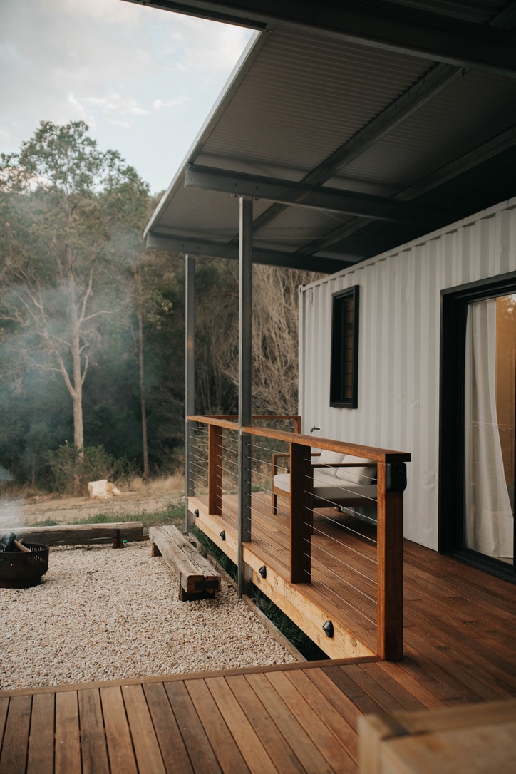 Reconnect with nature at this unforgettable escape. The cabin is nestled on 170 acres off Friday Hut Road in the hinterlands of Byron Bay. A Tiny Home built from two containers with two bedrooms, two bathrooms, full kitchen, dining area and seperate living room. The Cabin has plenty of space to rest, cook and gather in the countryside. Located minutes from the iconic village of Newrybar, 8 minutes to Bangalow and 20 minutes to downtown Byron, The Cabin is the perfect place for your escape.