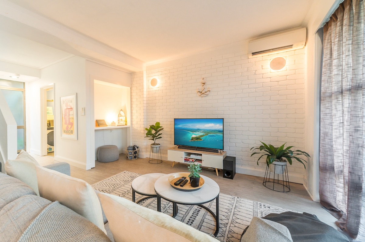 Soak up the contemporary coastal charm of this refurbished classic. Here, calming colours create a cool yet relaxed palette throughout. Eclectic accents include original photography and artwork, a cook's kitchen, and a comfy outdoor lounge with BBQ. A private, light filled, open plan living area is perfect for a relaxing get away. Calming colours have been carefully selected to create a cool yet relaxed colour pallet that softly engulfs you the moment you enter the space. Stay tucked up inside on the sofa and watch the smart TV with the use of the unlimited wifi provided, and the addition of a private courtyard lets you relax with a cool drink on the comfortable outdoor lounge. The master bedroom has a sitting area to give guests an opportunity to capture a rare moment of alone time to read or sneak in some work time while the other guests are enjoying the beach or simply just hanging out. The second bedroom has room to sleep three featuring bottom bunk as double bed with a single on the upper level. Both bedrooms have vanity mirrors and built in wardrobes with coat hangers. Access all areas with the exception of the owners storage cupboard in the second bedroom. We will respect your privacy and leave you to enjoy your stay. On arrival I will give my mobile number for contact anytime. I am happy to help with any enquiries and can assist you with organising any outings, so that you can make the most of your stay on the Gold Coast. The beautiful surf beach of Mermaid is practically on the doorstep. Along the way and almost as close are two premium eateries, Le Café Gourmand and Little Mermaid. A little further away is Bam Bam Bakehouse, with amazing pastries and coffee. Also conveniently located within walking distance Pacific Fair shopping centre and the Broadbeach shopping and dining precinct. A very short walk to the Gold Coast bus and light rail system! The 700 bus along the Gold Coast Highway offers direct transportation services to Coolangatta, Tugun, Currumbin, Burleigh Heads, Miami, Mermaid and the Broadbeach South station is in front of Pacific Fair Shopping Centre. The G:Link light rail, also located at the Broadbeach South station directly in front of Pacific Fair Shopping Centre, will easily and quickly transport you to the most popular areas of Broadbeach, Surfers Paradise and Southport. If you are travelling from Coolangatta Airport Mermaid 24 is about 25 minutes via Taxi/Uber or by Bus take Number 777 to the Mermaid Beach stop. Mermaid 24 is located within an original 1960's apartment complex on the beachside of Mermaid Beach, being at the back of the complex you have access to the beach via the back easement. The apartment also includes: - Free WiFi - Lounge area with a Smart TV - A selection of family favourite board games and books - Fully equipped Kitchen with all new appliances and equipment - Nespresso coffee machine - Children's dinner ware and cutlery - Ironing Board and Iron - Hair-dryer - Stick vacuum cleaner - Towels and beach towels - Assortment of Beach toys - Front loader washing machine and clothes horse (no clothes dryer) - Parking for one car at the front of the apartment and there is free all day parking available in the side streets - Excellent accommodation for a business trip A complimentary pantry of condiments, snacks with a selection of spreads and sauces. Nespresso coffee pods and tea are also provided. We also have available a port-a-cot, stroller and highchair, please let us know prior to arrival if you require. A private, light filled, open plan living area is perfect for a relaxing get away. Calming colours have been carefully selected to create a cool yet relaxed colour pallet that softly engulfs you the moment you enter the space. Stay tucked up inside on the sofa and watch the smart TV with the use of the unlimited wifi provided, and the addition of a private courtyard lets you relax with a cool drink on the comfortable outdoor lounge. The master bedroom has a sitting area to give guests an opportunity to capture a rare moment of alone time to read or sneak in some work time while the other guests are enjoying the beach or simply just hanging out. The second bedroom has room to sleep three featuring bottom bunk as double bed with a single on the upper level. Both bedrooms have vanity mirrors and built in wardrobes with coat hangers..