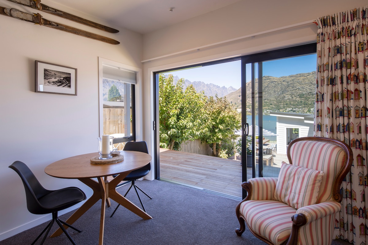 Newly built stylish studio, provides you with uninterrupted views of Lake Wakatipui, the Remarkables mountain range, and surrounding mountains. Located 40 metres from the lakes edge and connecting you to Queenstown's main walking/cycle trial, offers you a short stroll, long walk, or adventuress bike rides. Five minute walk from the studio is the marina with water taxi service, the famous boat shed cafe, and a boutique brewery.,