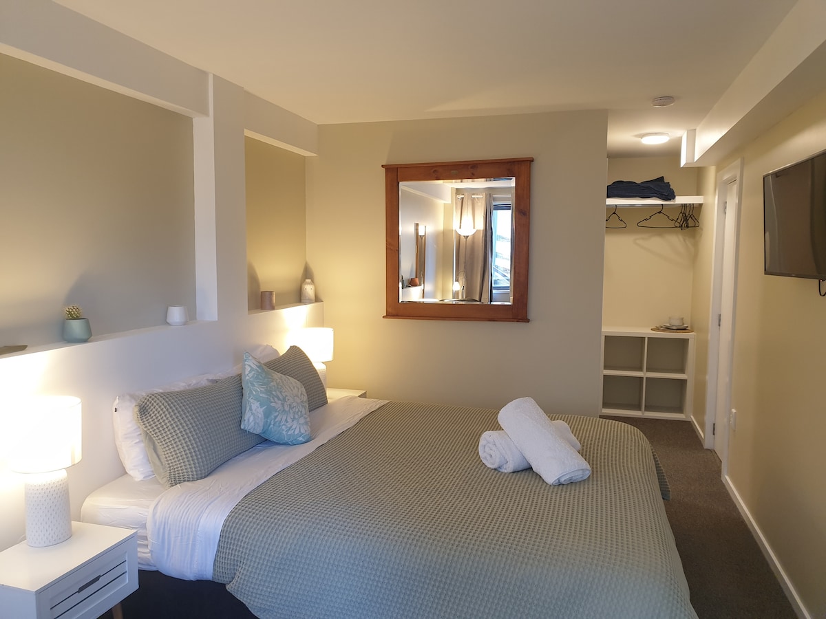 SPECIAL RATES This is a studio Room with a spectacular view of Queenstown. Only A ten minute walk into the iconic Queenstown , please note we are on a hill so the walk up is a little longer. There is A small kitchenette with microwave ,fridge and tea and coffee facilities , free WiFi, nice double bed with a spectacular views Complete with off street parking. This is totally private with no access to the rest of the property