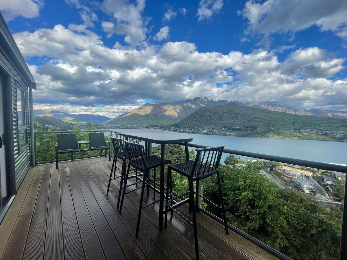 Private, warm, sunny studio in Kelvin Heights with panoramic views over Lake Whakatipu, snow capped mountains and Deer Park. The studio features underfloor heating, a plush Queen bed, fully equipped kitchen, comfortable lounge, dining table and Netflix. Every window is a postcard. We are just 3km from the airport, Remarkables Park shopping centre, and the Remarkables skifield access road, as well as being a short stroll to the lake and Queenstown trails.