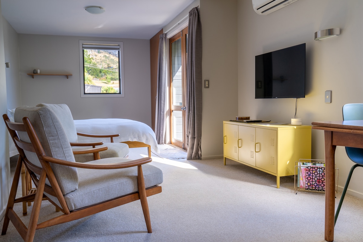 Self-contained well appointed Studio apartment located in convenient Frankton. Walking distance to shops, restaurants, bus stop, lake & river and the airport. Full kitchen - fridge, oven, microwave, dishwasher. Bathroom with a shower and combination Washer/Dryer. Ventilation system and underfloor heating for full comfort. Private outdoor seating area. Wifi and TV. Bed is set up as a super king but can be separated to accommodate 2 single beds on request. Keyless electronic entry.
