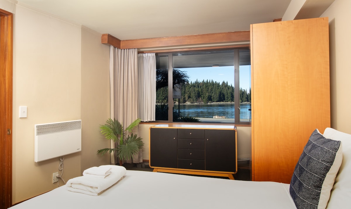 New luxury apartment, stylishly and comfortably decorated and sitting directly on the edge of Lake Wakatipu with the panoramic backdrop of The Remarkables. The apartment is fabulously located on the walking/cycling track between Queenstown and Frankton and being only a 5 minute drive to the centre of Queenstown. Well suited for a couple, 2 couples or a family of 4. Enjoy returning home to the apartment to relax and soak up the view whilst listening to the waves lapping on the foreshore.