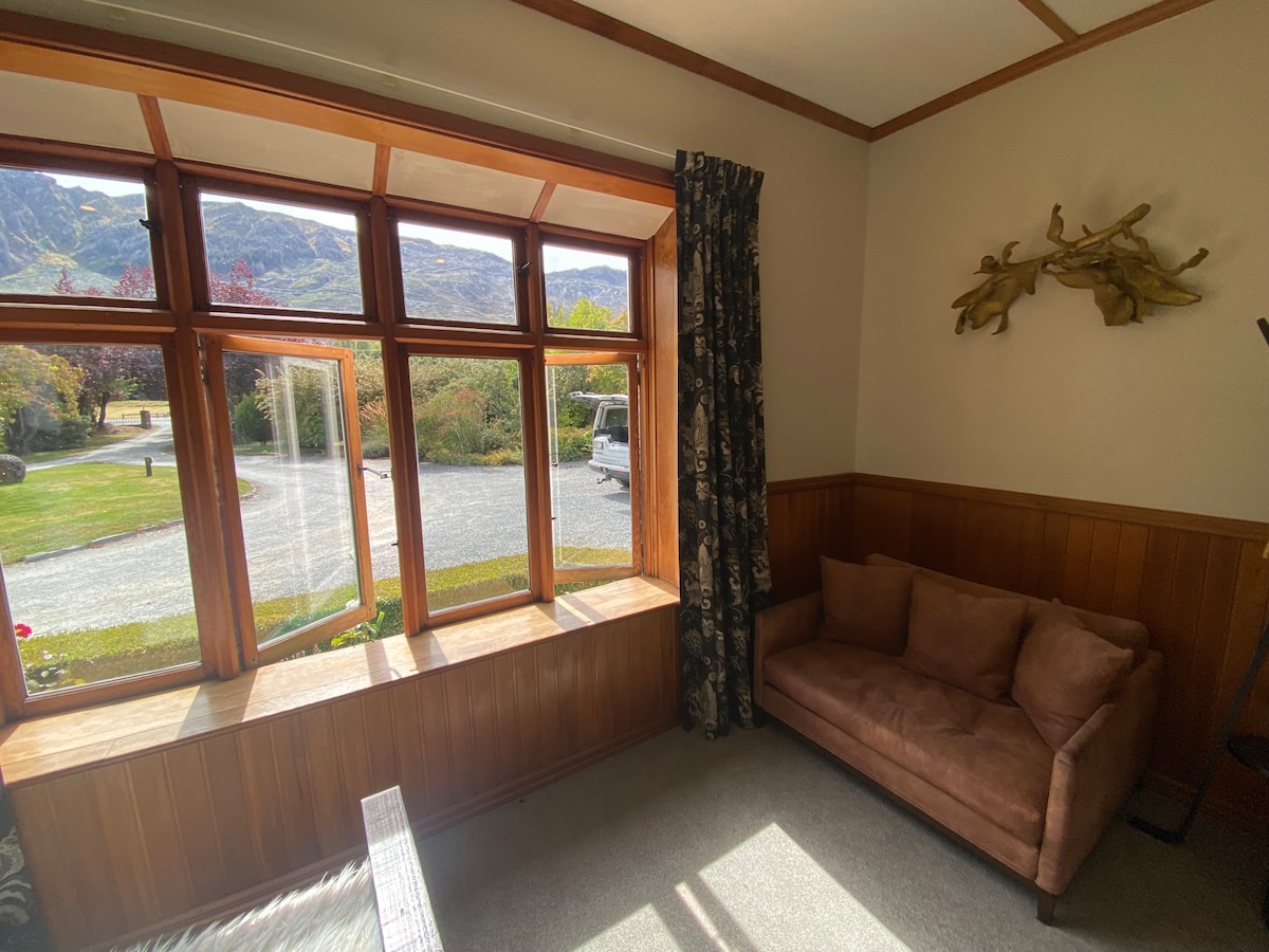 Two bedroom cottage adjacent to the main house with views to Coronet Peak. Kitchenette with Kettle, Fridge, Toaster and Microwave. (No oven or cooking) Living room with beautiful view over the mountains. Smart TV Electric Radiators and writing desk. Two Bedrooms. Two Queen beds. Bathroom with Steam shower. Located 1km from the Shotover Gorge Bike Trail. E-bike charging/storage available