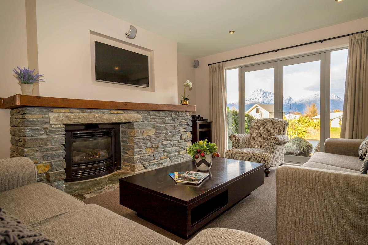 Relax and unwind in your own quiet retreat in Jack’s Point with big mountain views. Sleep soundly in a queen sleigh bed with feather pillows & quality linen. Black-out blinds encourage sleep-ins & there’s a large wardrobe if you wish to unpack. The lounge has a foldout couch, smart TV & lofty ceilings. There’s no kitchen but tea, coffee, mini fridge & microwave are provided. There’s a terrace & small garden to sit outside. Plus a clean modern designer bathroom for your private use.