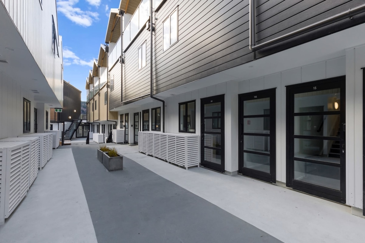 Nestled amongst the trees, modern and brand new Alex Apartments are a 5 minute walk to downtown Queenstown's amazing restaurants, bars, Skyline Gondola, Kiwi Wildlife park and so much more. Across the road you will find the Raeward Fresh Deli and Fresh Choice supermarket. The apartment has a communal courtyard, and gym and comes with 1 undercover secure parking space. We look forward to you welcoming you to our Alpine apartment!