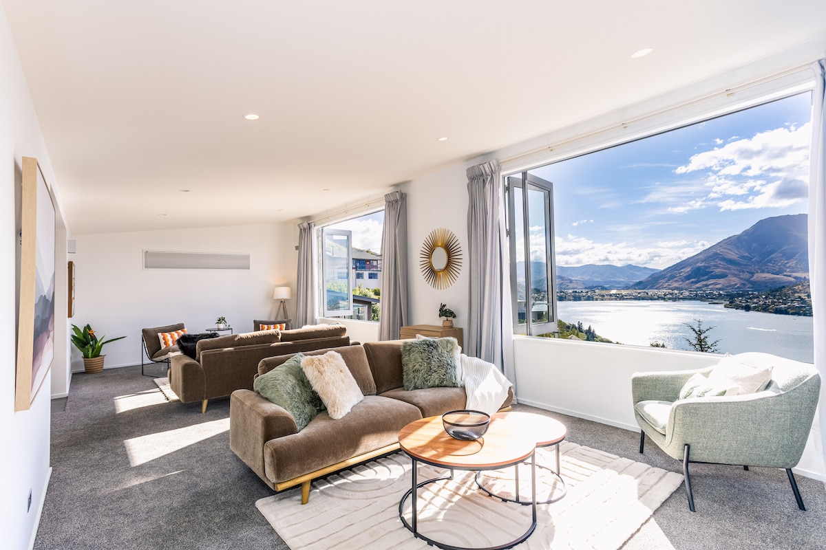- NEW SPA!!! - No hidden cleaning fees - Underfloor Heating and Air-conditioning - Unlimited High-speed Wifi - Complimentary use of our bikes Step into pure indulgence at this exceptional Queenstown retreat, where every room offers uninterrupted views of Lake Wakatipu and the majestic surrounding mountains. Perfectly designed for all seasons, this three-bedroom home combines sleek modern elegance with thoughtful comfort, creating an unforgettable alpine experience.